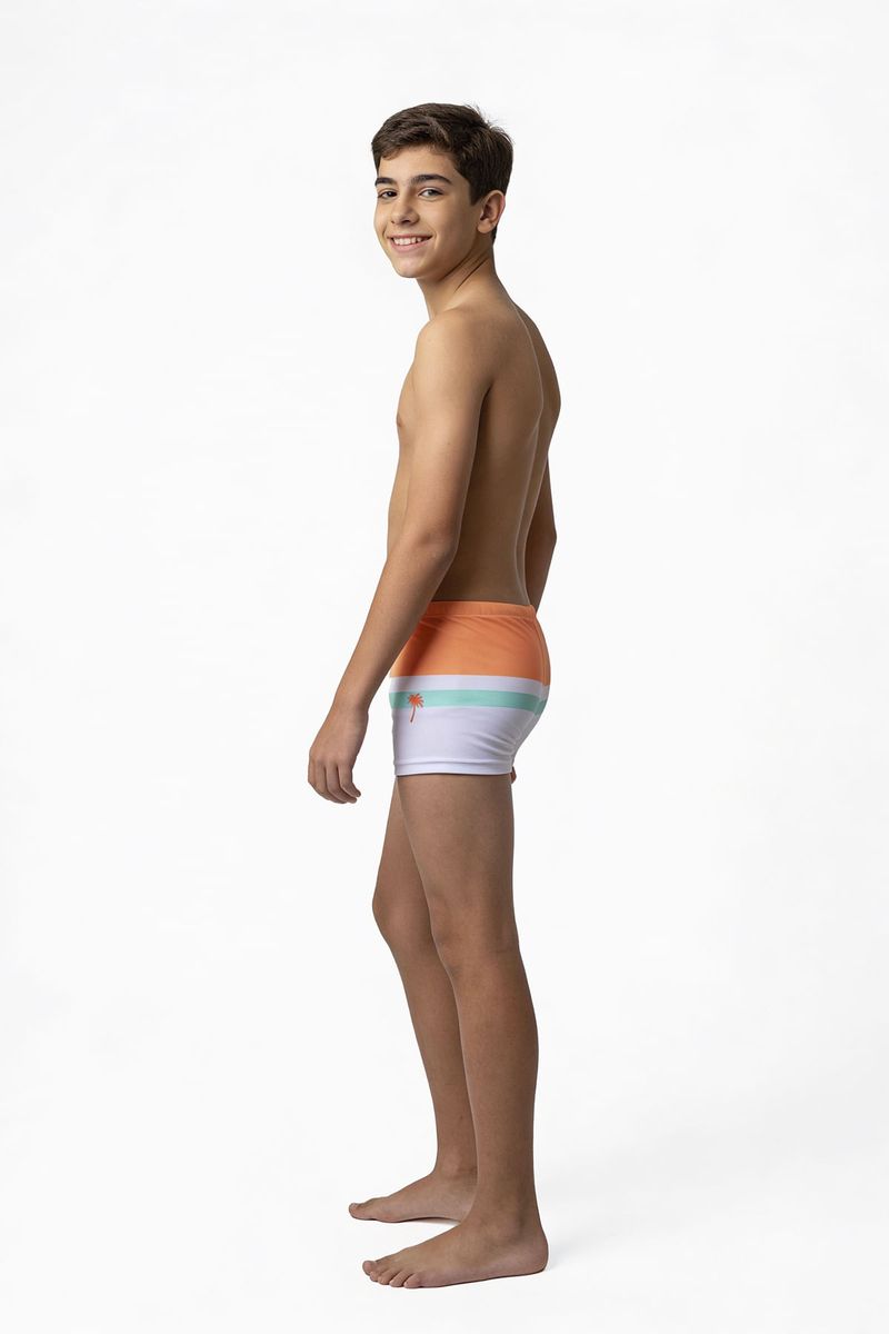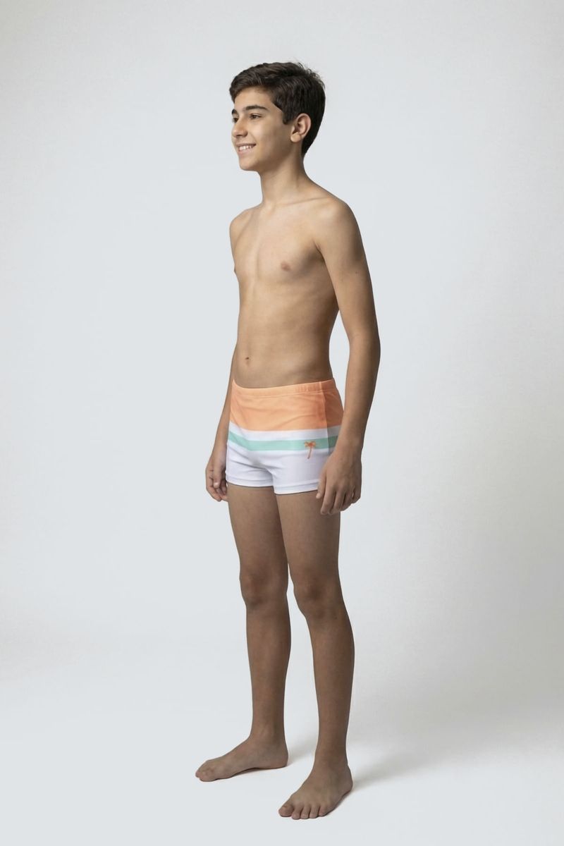 Prepare-se para o verão com a Sunga Boxer Juvenil Listrada Caedu! Com design estampado e cores vibrantes como pêssego, menta e branco, esta peça de moda praia oferece conforto e liberdade para brincar. Ideal para os dias de sol, a composição em poliéster e elastano garante durabilidade e um ajuste perfeito para os pequenos aventureiros.