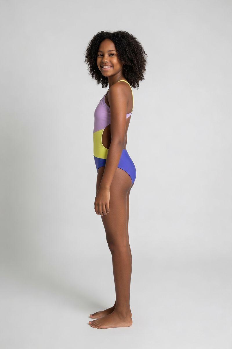 Prepare-se para brilhar com o Maiô Juvenil Vibrante Color Block Caedu. Com design moderno e recortes laterais, este maiô oferece estilo e conforto para as aventuras na água. Sua composição em poliéster e elastano garante durabilidade e um ajuste perfeito, ideal para a moda praia infantil.