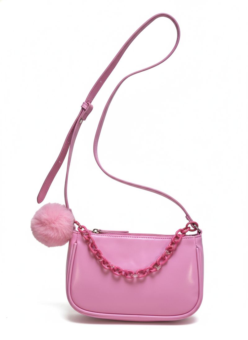 A Bolsa Tiracolo Caedu Rosa Chiclete é o acessório perfeito para realçar seu estilo. Com design vibrante em PU, possui fecho de zíper, alça ajustável, corrente decorativa e um charmoso pom-pom fofo. Leve e prática, ideal para quem busca moda e personalidade.