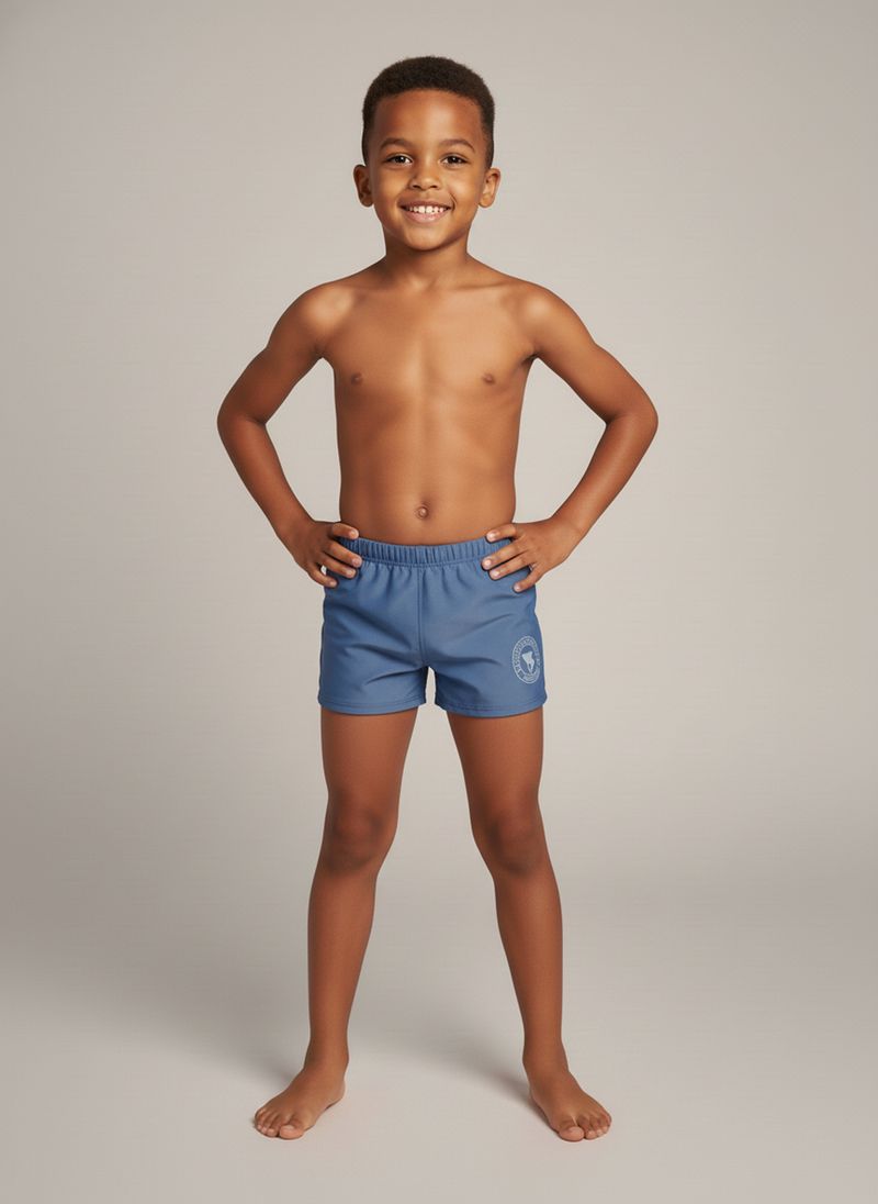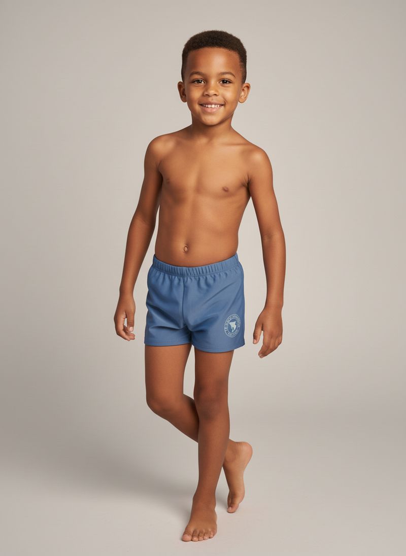 A Sunga Azul Marinho Aces Juva Caedu oferece o máximo de estilo e conforto para os dias de sol. Com sua composição de 85% poliéster e 15% elastano, garante durabilidade e secagem rápida, perfeita para a moda praia infantil.