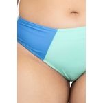 Calcinha biquíni tricolor cintura alta, modelo plus size. Possui laterais médias, forro, acabamento e costura no tom. no acompanha parte de cima.