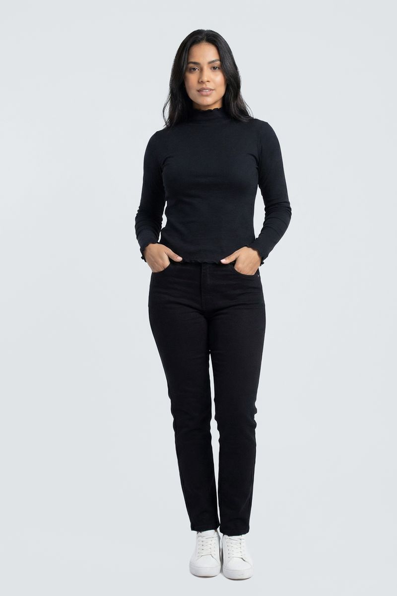 Blusa fem cas m/l ribana gola alta preto preto