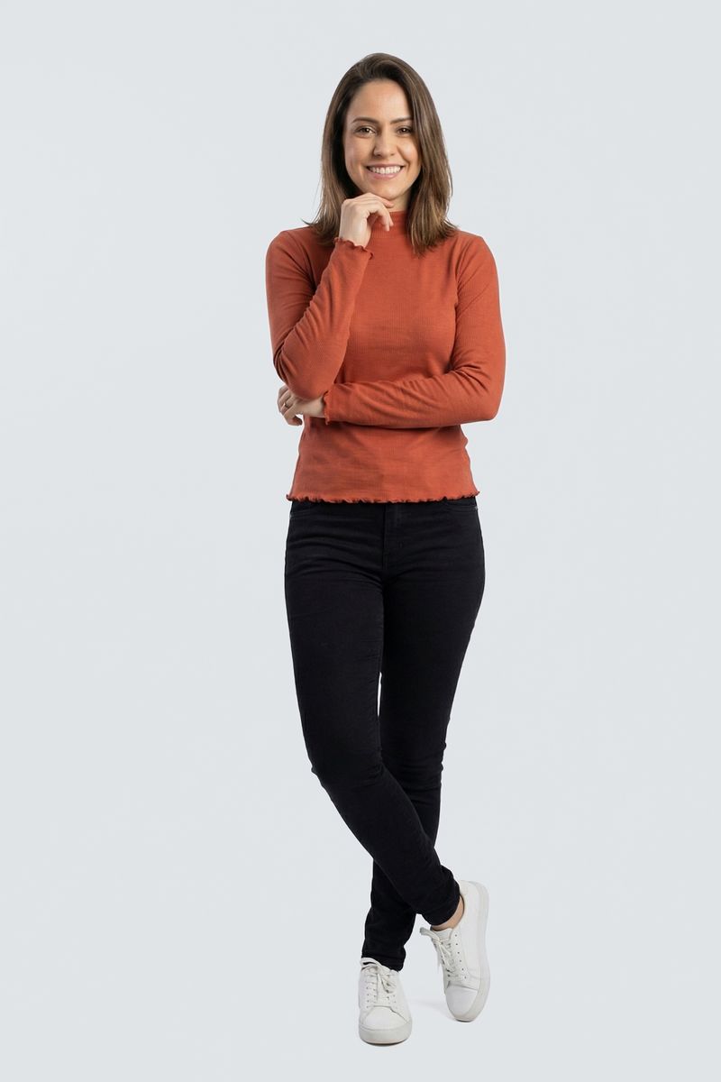 VestuárioFemininoBlusas e CamisetasBlusa fem cas m/l ribana gola alta terra laranja escuro