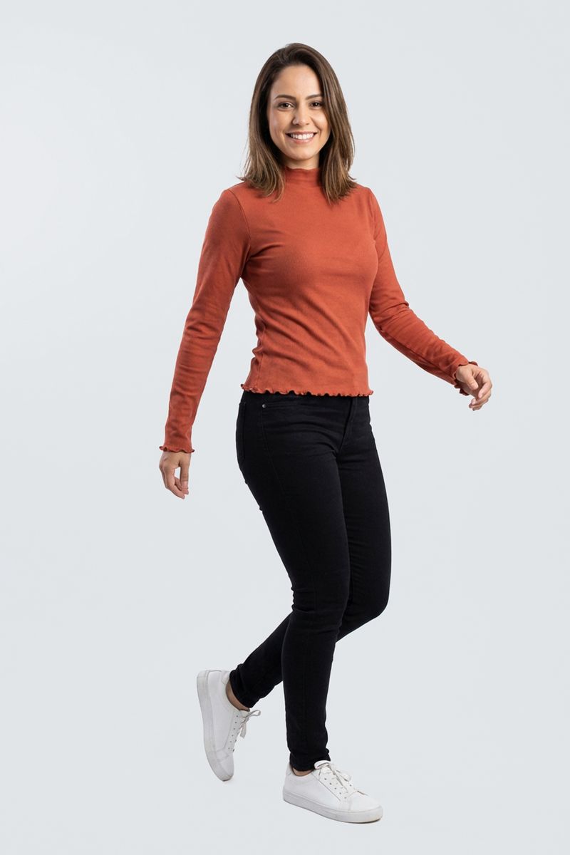 Blusa fem cas m/l ribana gola alta terra laranja escuro