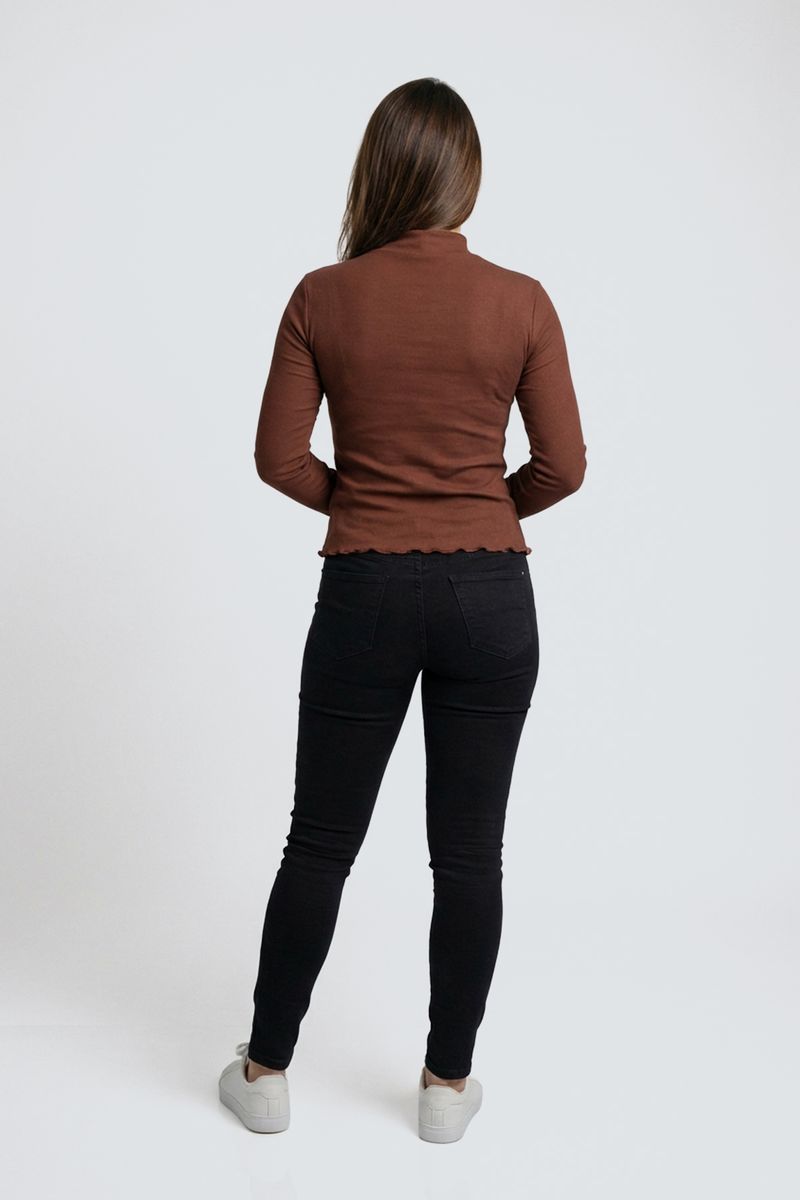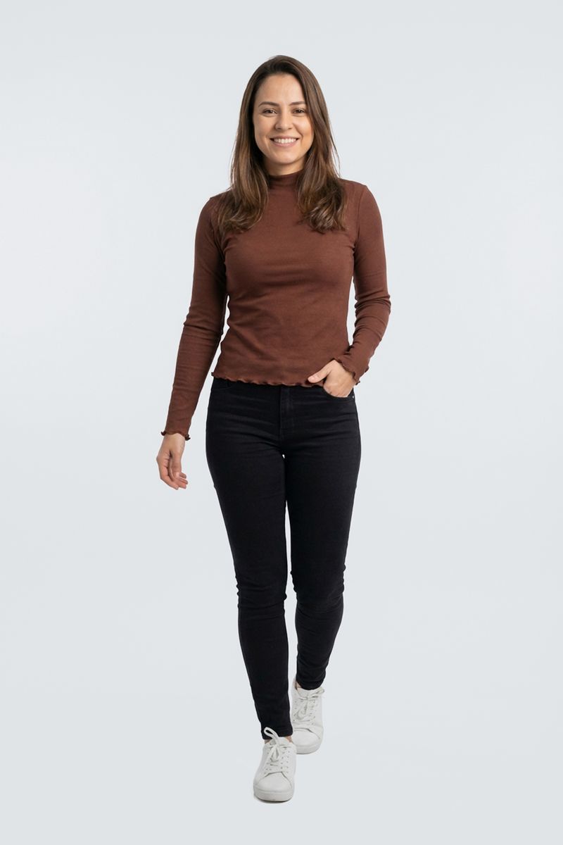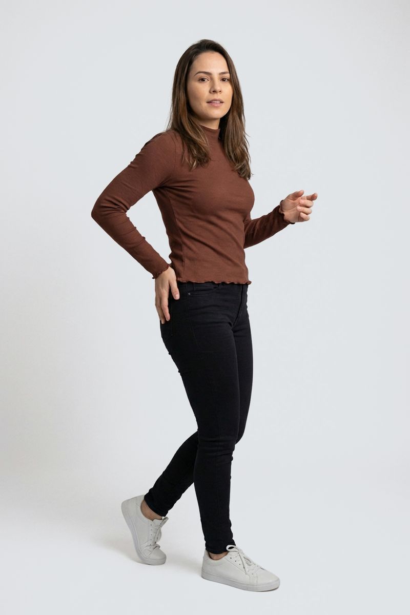 VestuárioFemininoBlusas e CamisetasBlusa fem casual m/l ribana g/a marrom marrom escuro