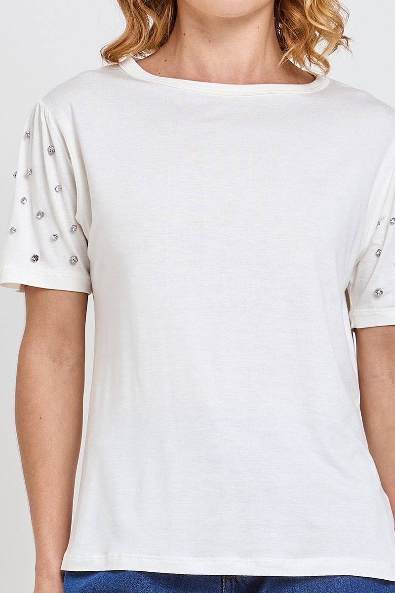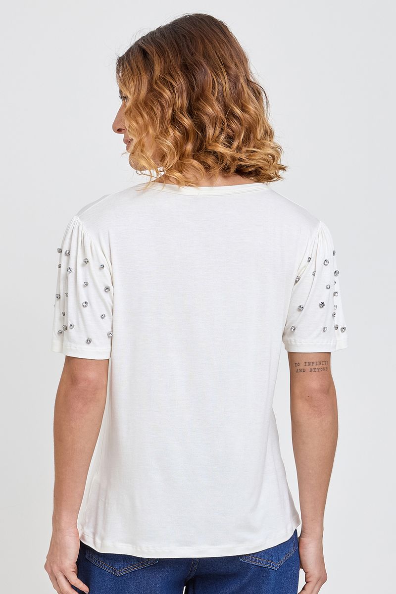 A Blusa Feminina Caedu off white com detalhes em hotfix nas mangas é a escolha perfeita para quem busca moda e sofisticação. Adicione um toque de brilho e versatilidade ao seu guarda-roupa com esta roupa essencial da Caedu, ideal para criar looks modernos e cheios de personalidade.