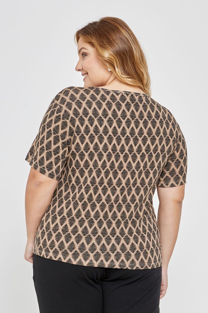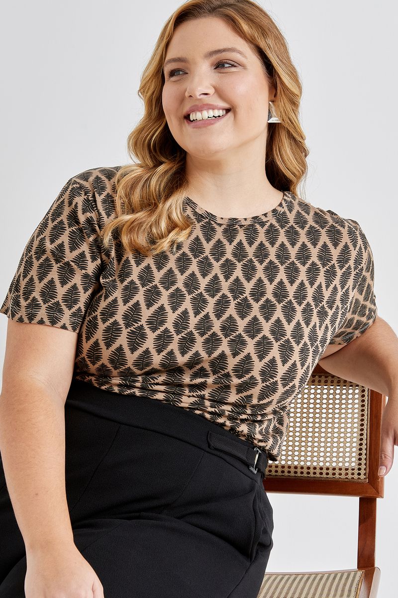 Combine sua blusa estampada com calças jeans para um visual despojado, ou com uma saia midi para um toque mais elegante. Para os pés, tênis brancos ou sandálias rasteirinhas complementam o look. Adicione acessórios discretos para realçar a estampa e criar um visual único e confortável.