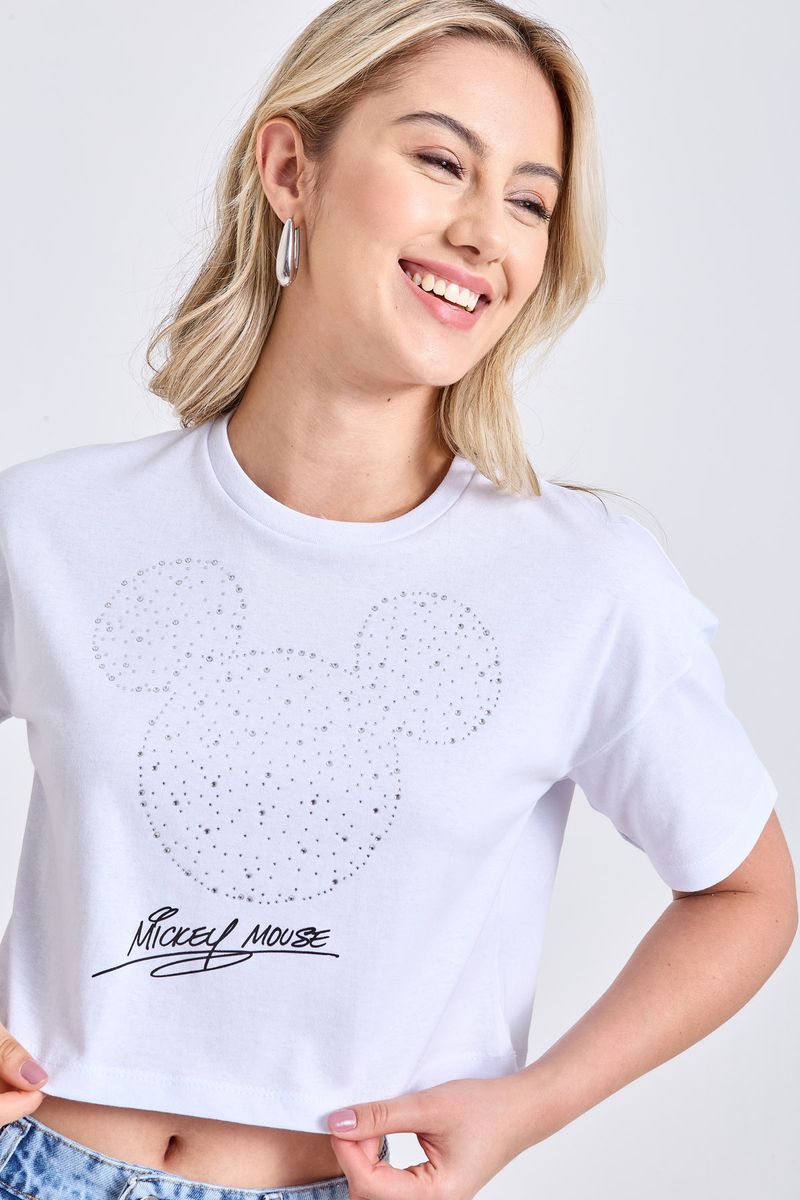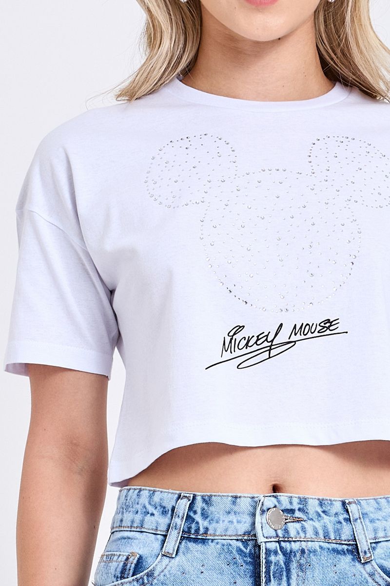 A Blusa Cropped Feminina Mickey Mouse Hotfix Brilhante Branca Disney Caedu eleva seu estilo. Conforto em 100% algodão, meia malha, com estampa do Mickey Mouse em hotfix brilhante. Um toque moderno e divertido para a moda feminina.