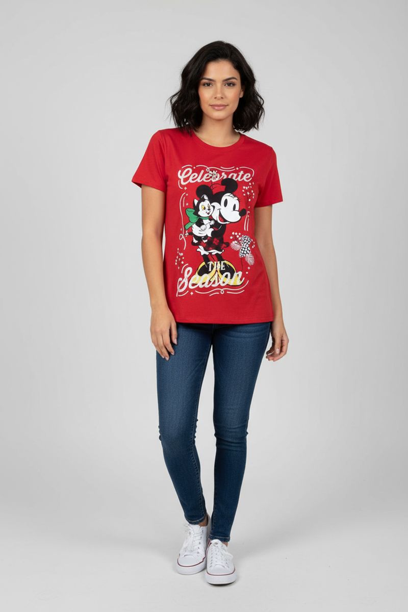 Estampa: Minnie e Figaro natalina com frase 'Celebrate The Season'