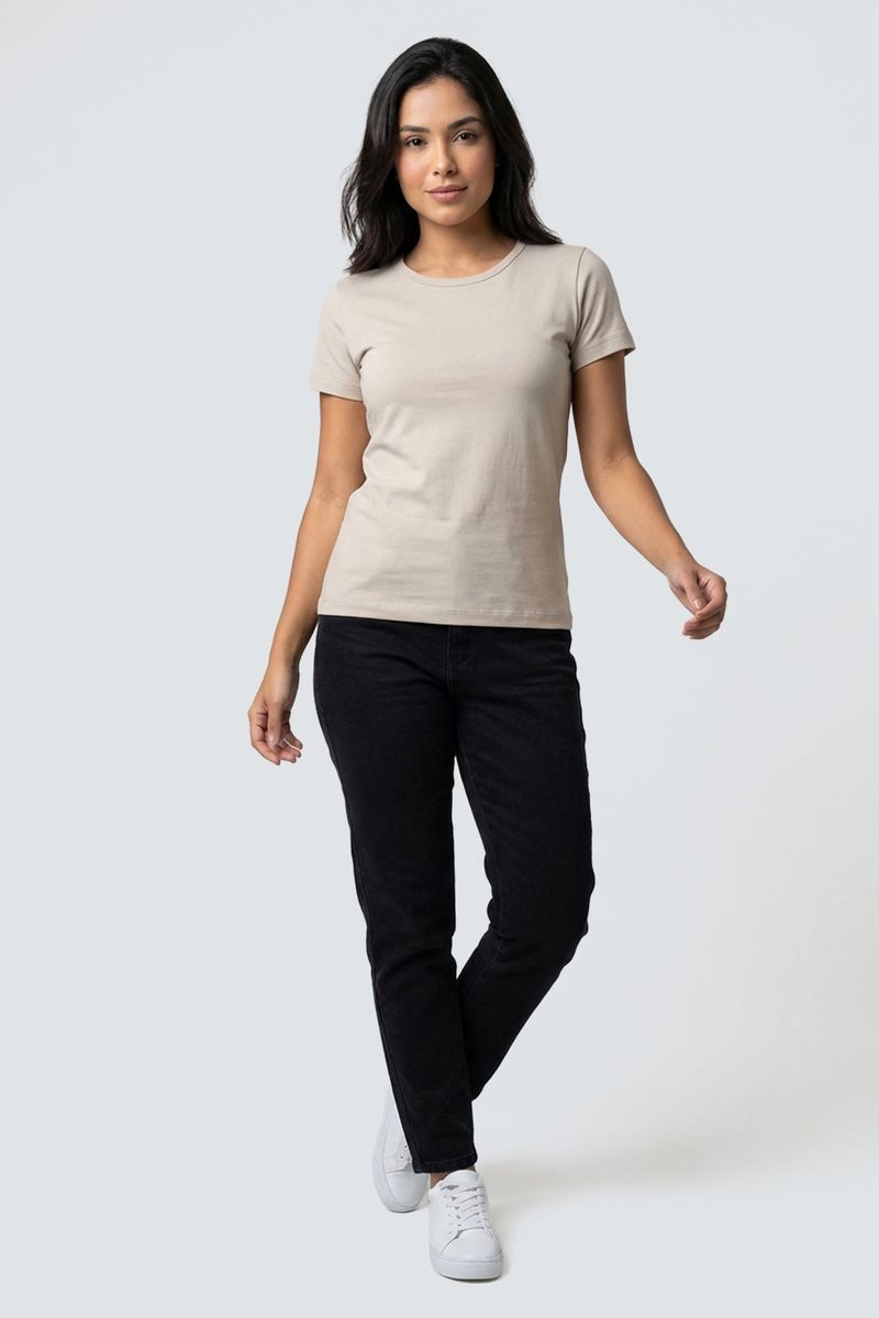 Blusa fem promo manga curta cotton bege bege claro
