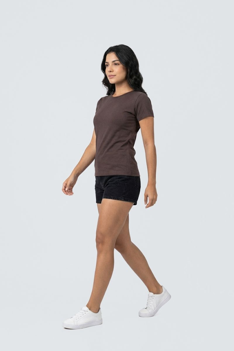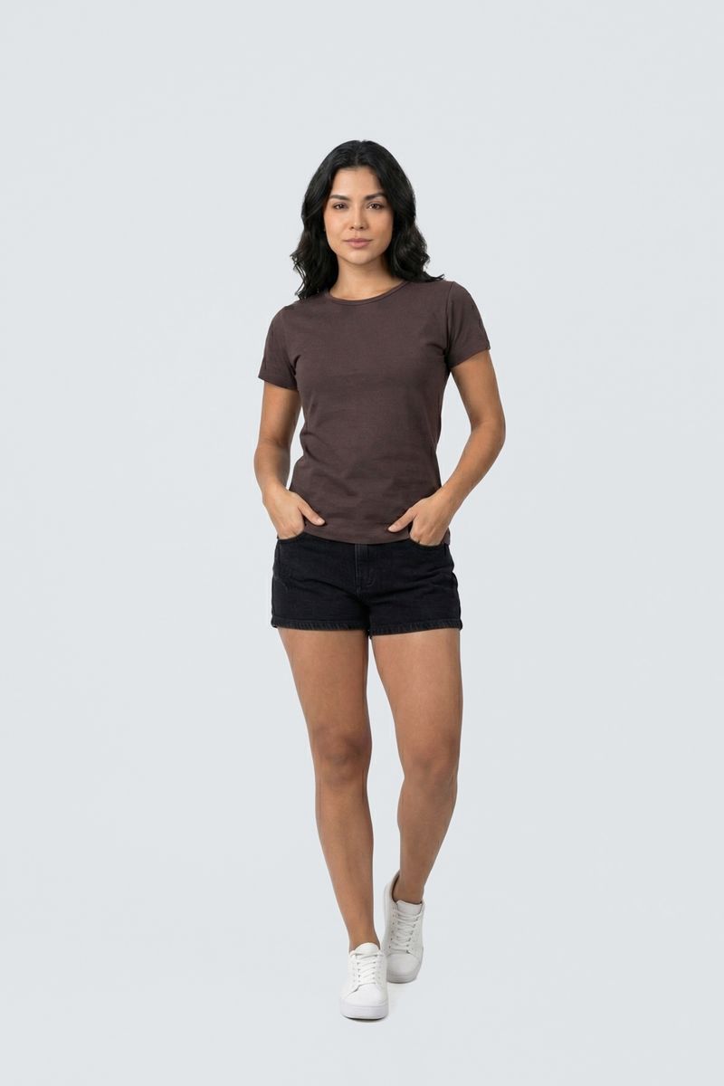 Blusa fem promo manga curta cotton rs c marrom medio