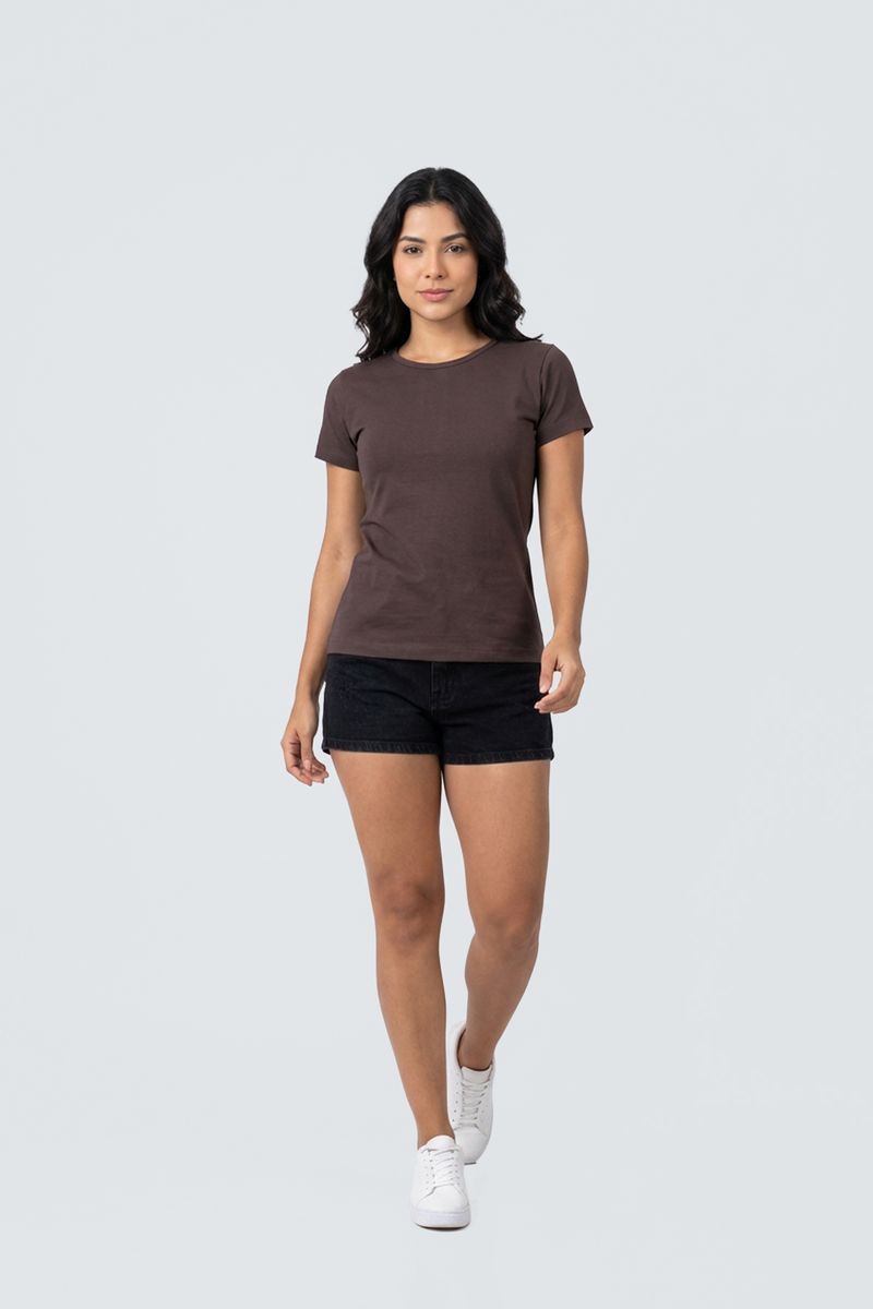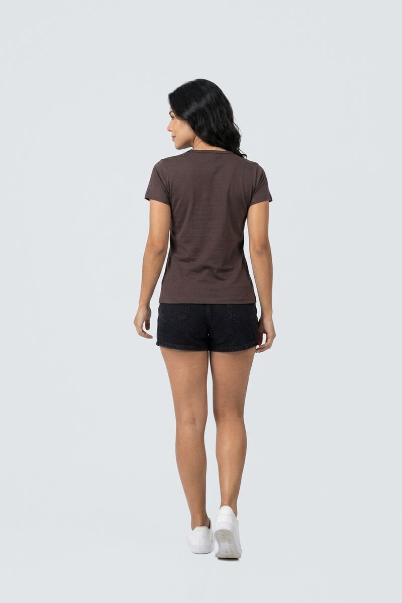 VestuárioFemininoBlusas e CamisetasBlusa fem promo manga curta cotton rs c marrom medio