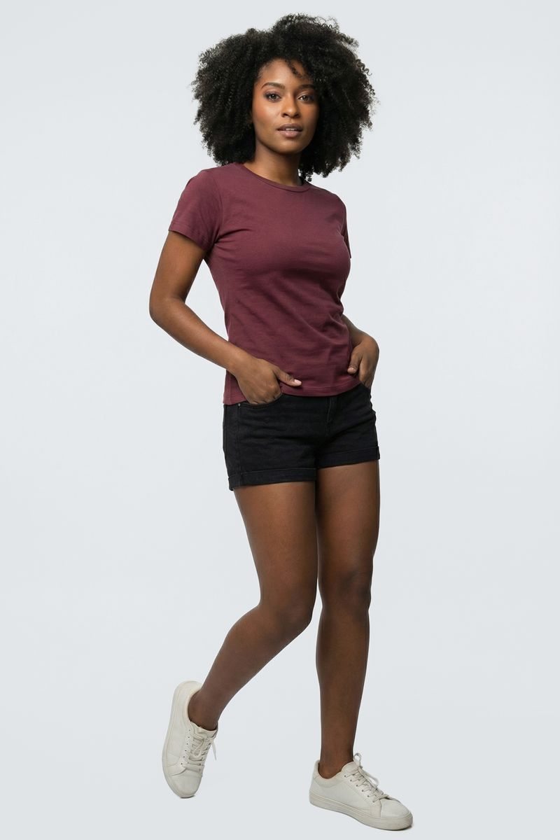VestuárioFemininoBlusas e CamisetasBlusa fem promo manga curta cotton vinho vermelho escuro