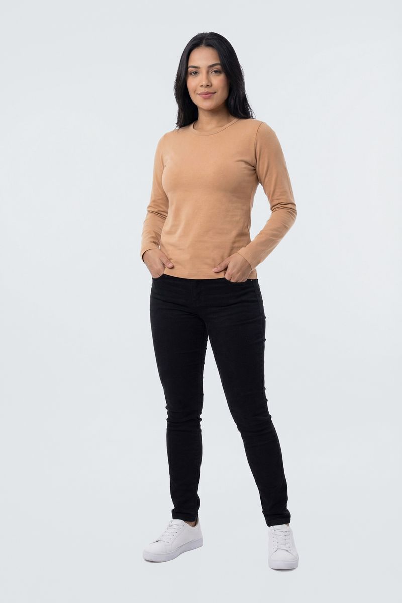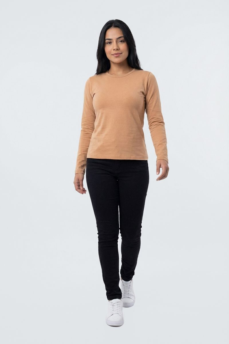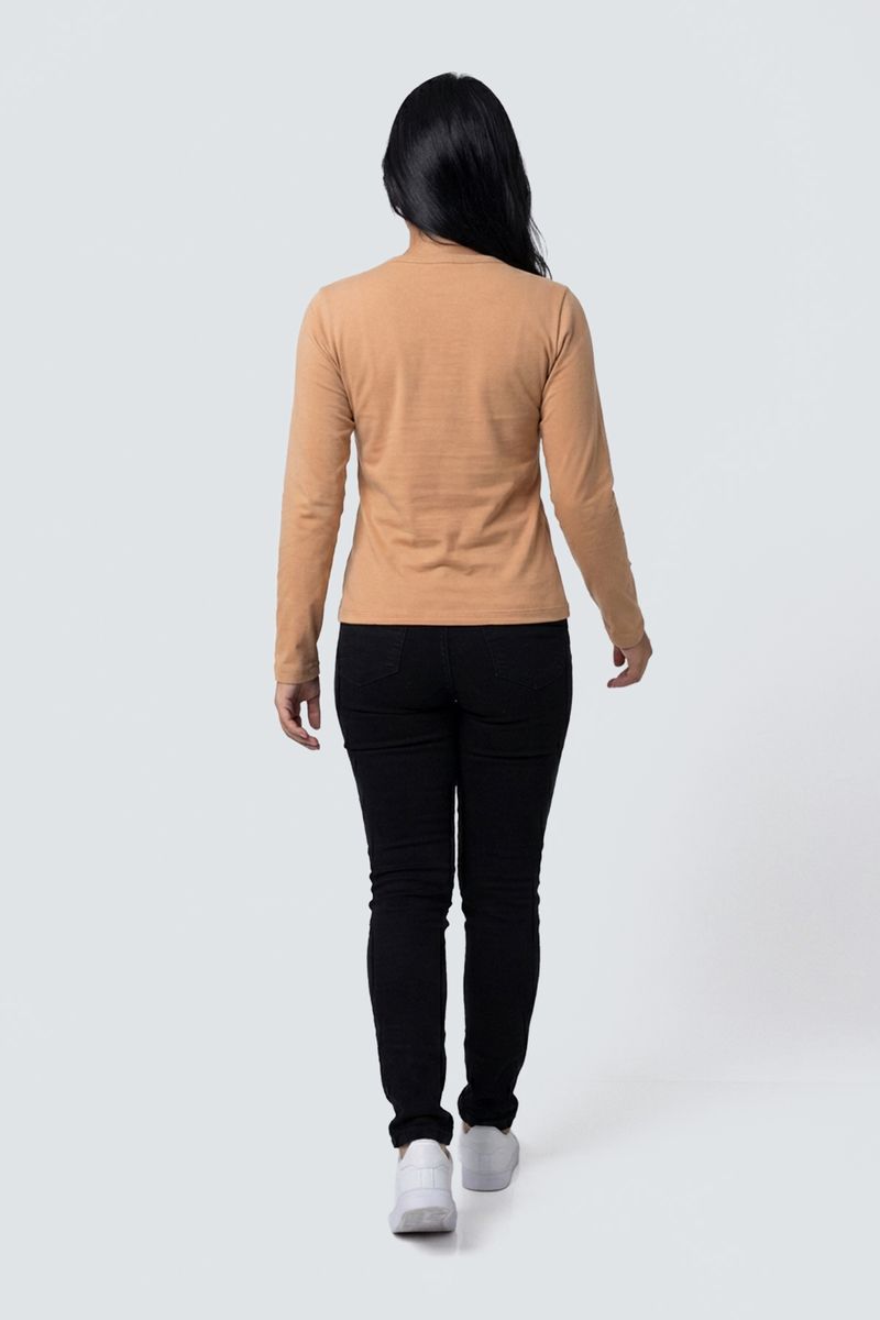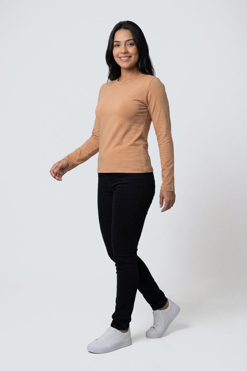 Blusa fem promo manga longa cotton bege bege medio