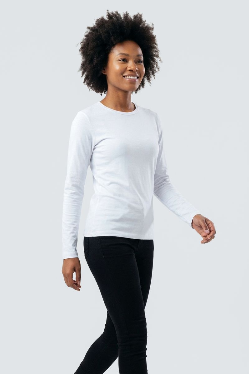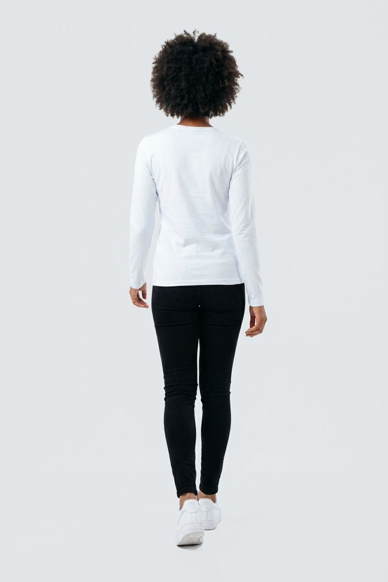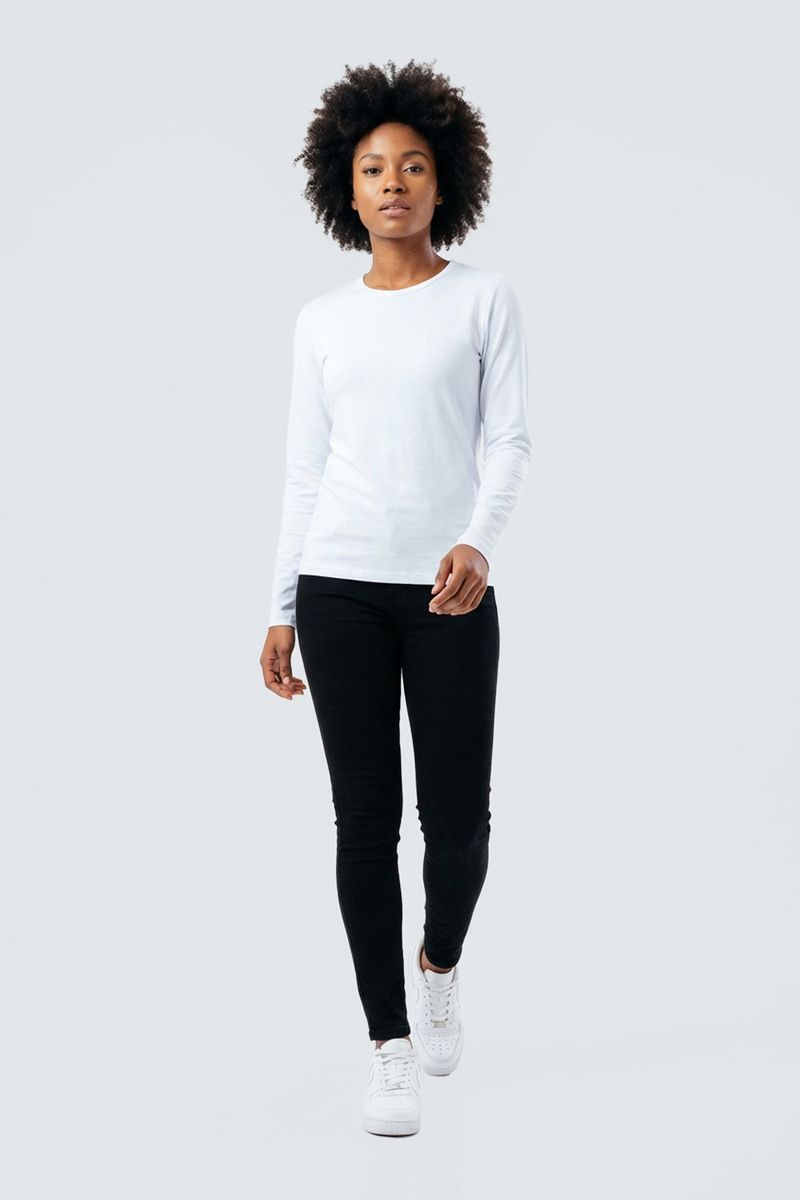 Blusa fem promo manga longa cotton branc branco