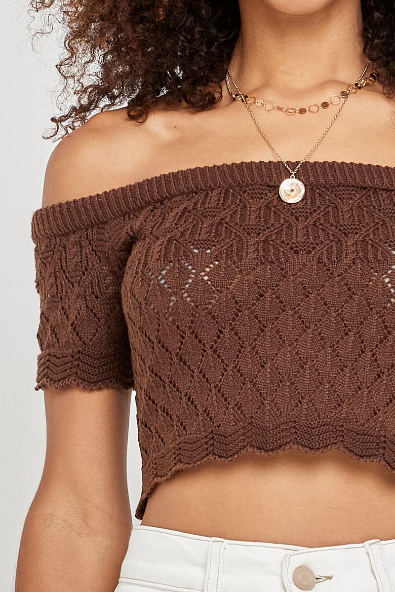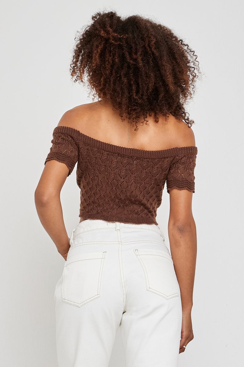 Sinta a liberdade e o estilo com a Blusa Feminina Cropped Tricot Ciganinha Caedu. Com design de ombros à mostra e trama aberta em losangos, esta peça em tricot marrom chocolate oferece conforto e um toque de sofisticação. Perfeita para quem busca uma roupa moderna e versátil da moda Caedu.