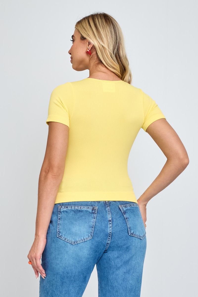 A Blusa Feminina Amarela Caedu é a escolha perfeita para quem busca leveza e bem-estar. Com decote U e manga curta, esta peça em poliéster e elastano oferece um caimento impecável, ideal para looks frescos e descontraídos. Renove seu guarda-roupa com esta roupa versátil e cheia de estilo da Caedu.
