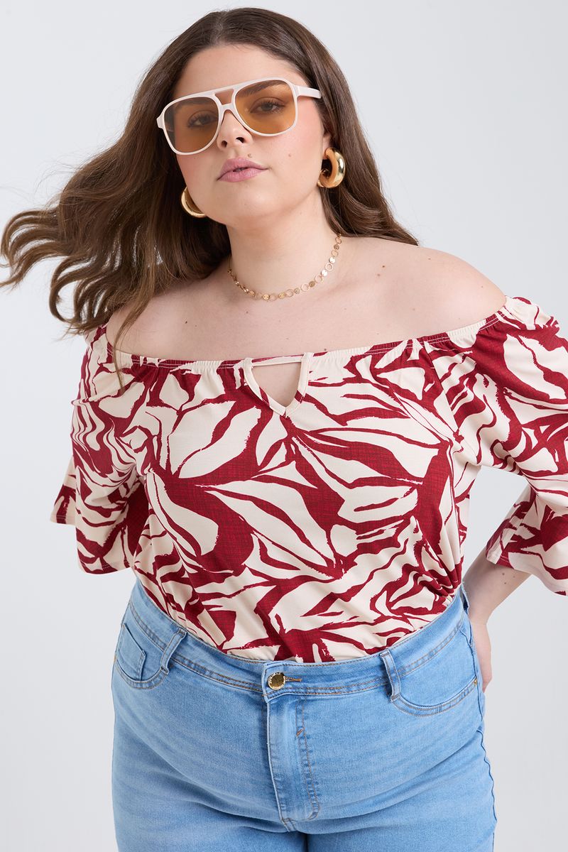 Sinta a leveza da Blusa Ciganinha Caedu, ideal para quem busca moda e conforto. Com estampa de folhagem vibrante, decote ombro a ombro e detalhe vazado em V, esta roupa feminina em Viscolycra proporciona um caimento impecável. Encontre seu estilo na loja virtual Caedu!