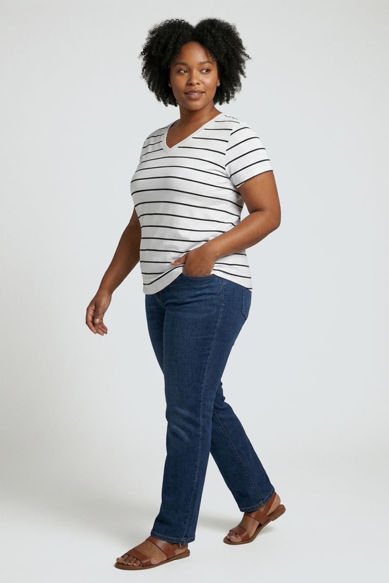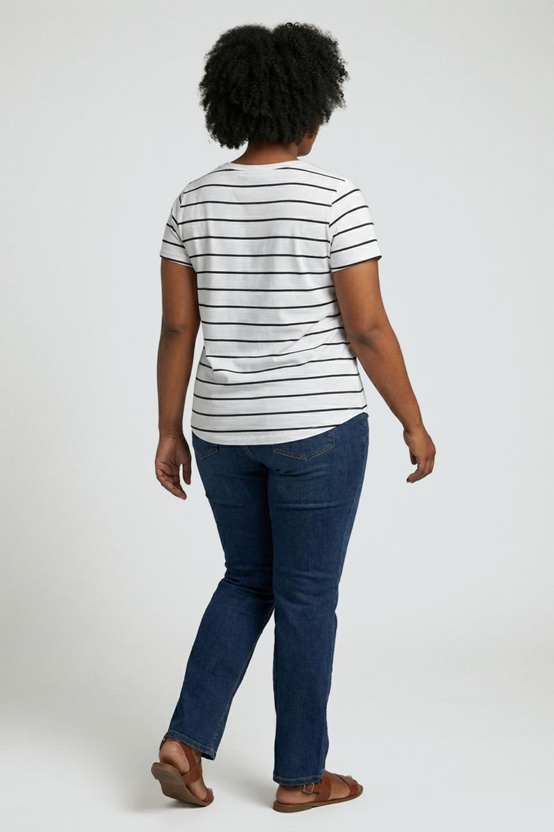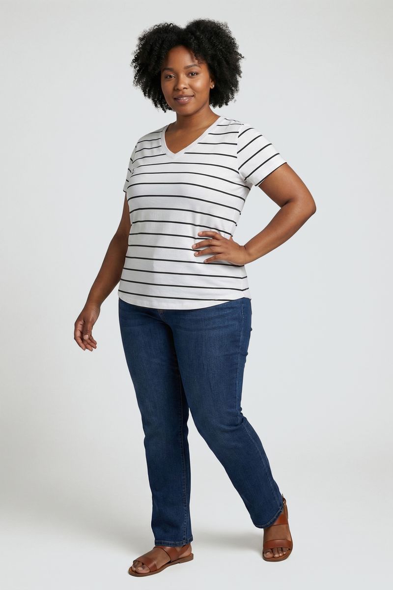 Blusa fpm promo m/c gola v listrado b/p estampado