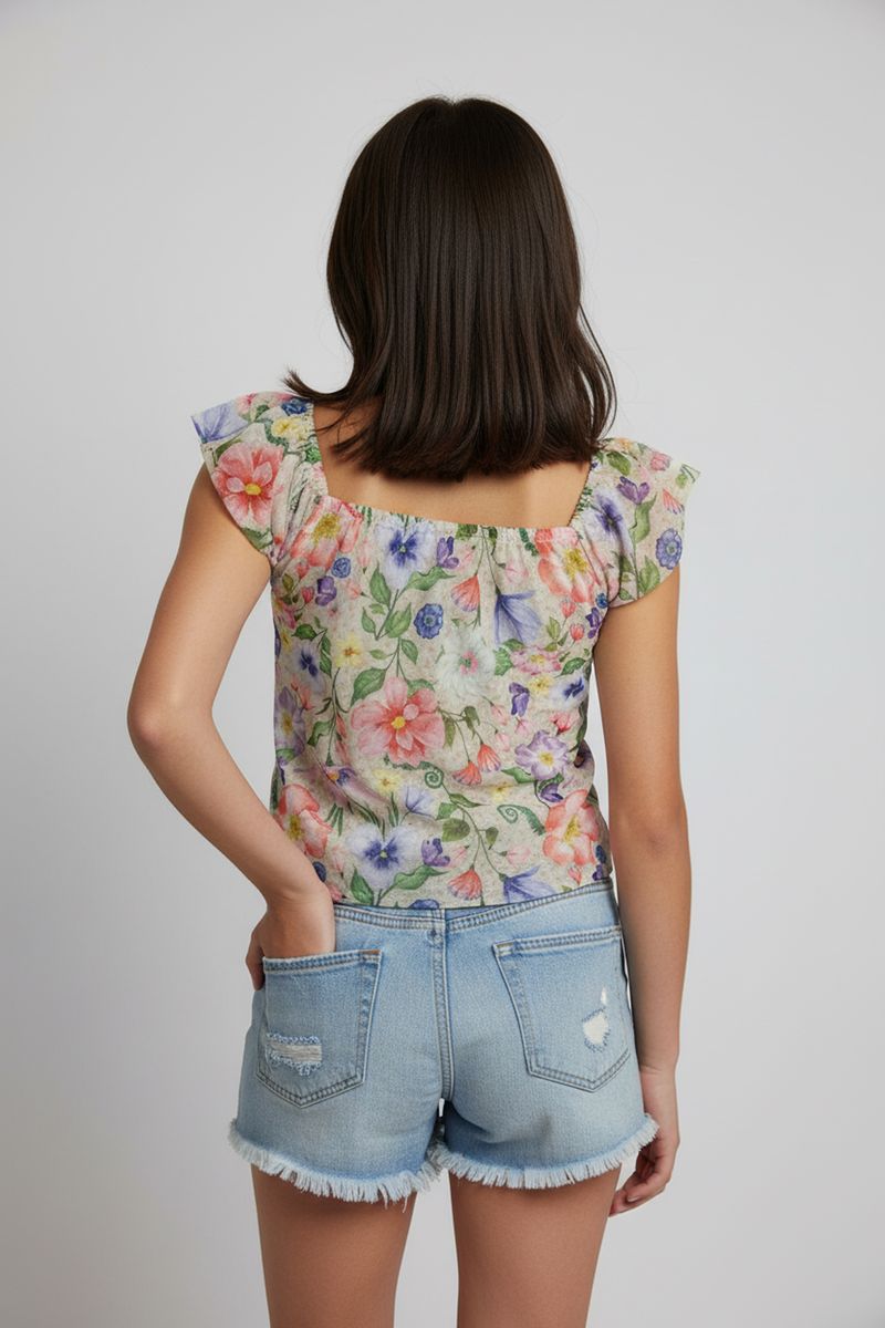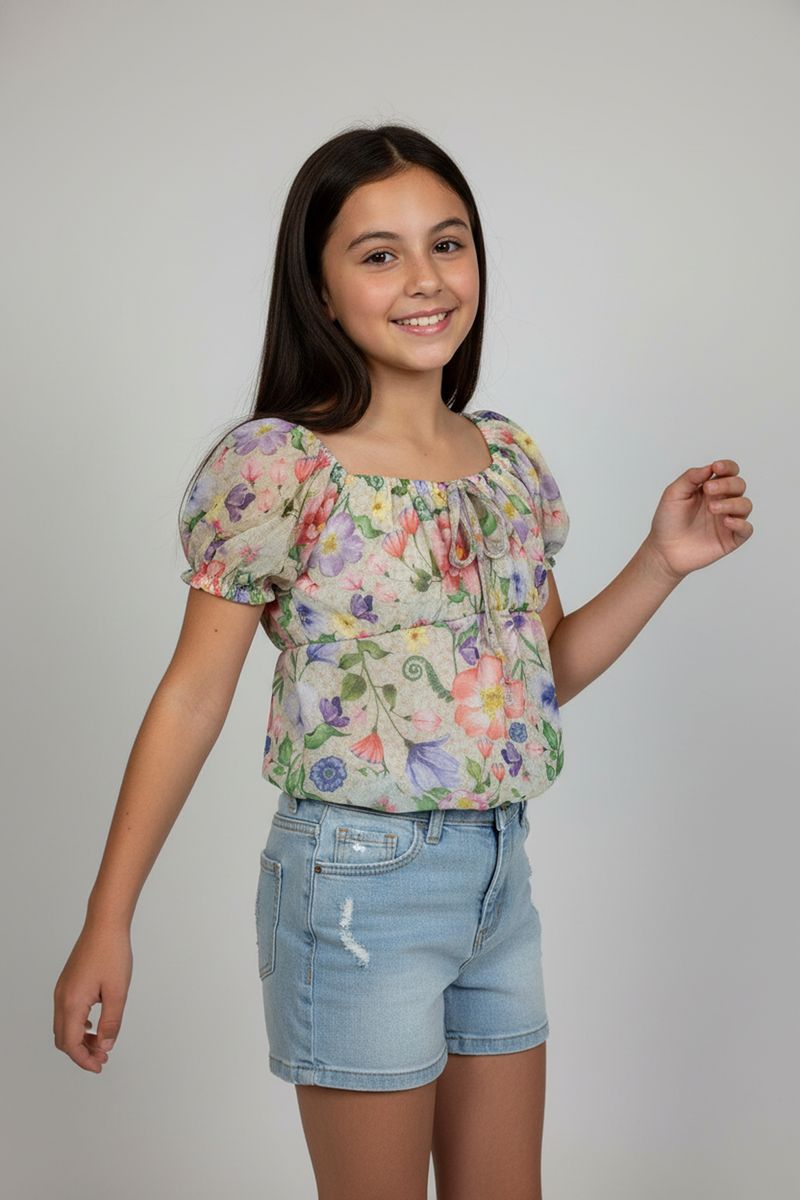 Combine sua blusa ciganinha floral com shorts jeans para um look despojado e divertido. Para um toque mais arrumado, experimente com uma saia jeans ou calça pantacourt. Complete o visual com sapatilhas, sandálias ou tênis casuais e acessórios como tiaras coloridas, criando um estilo único e cheio de personalidade.