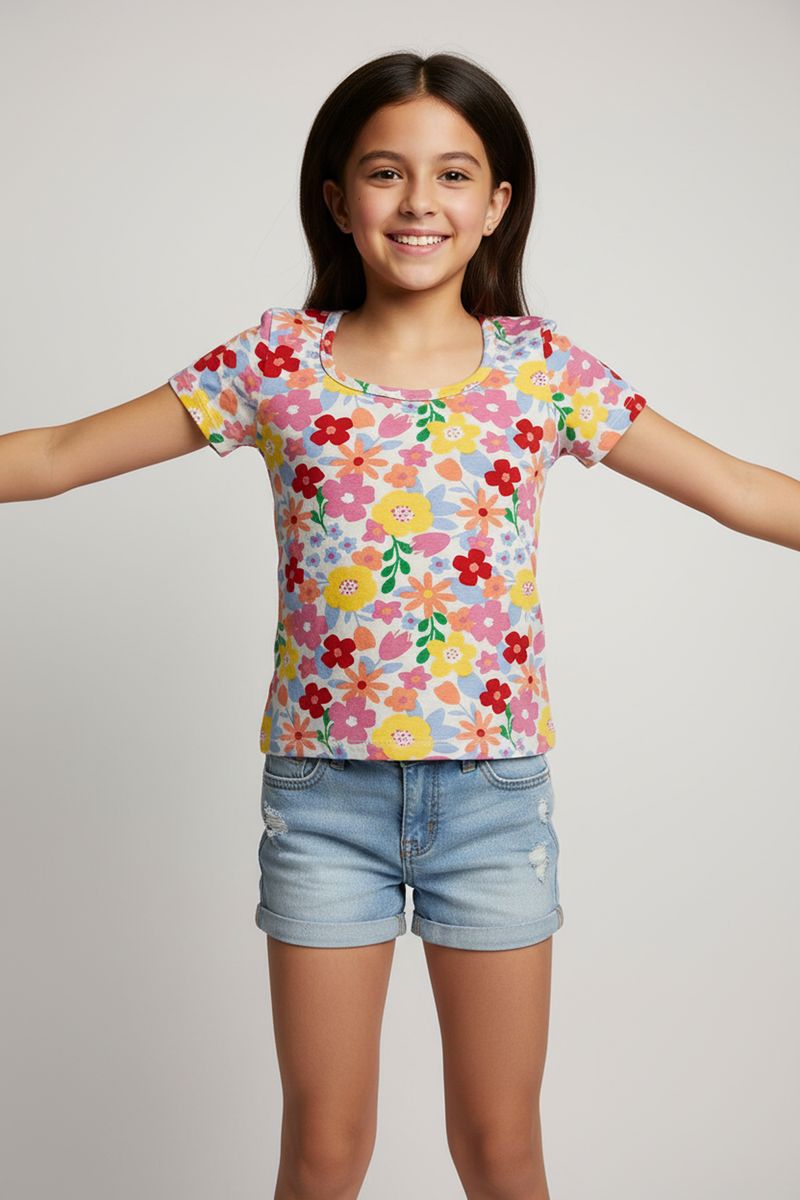 Blusa Infantil Caedu de Algodão Estampa Floral Vibrante é ideal para as pequenas. Em