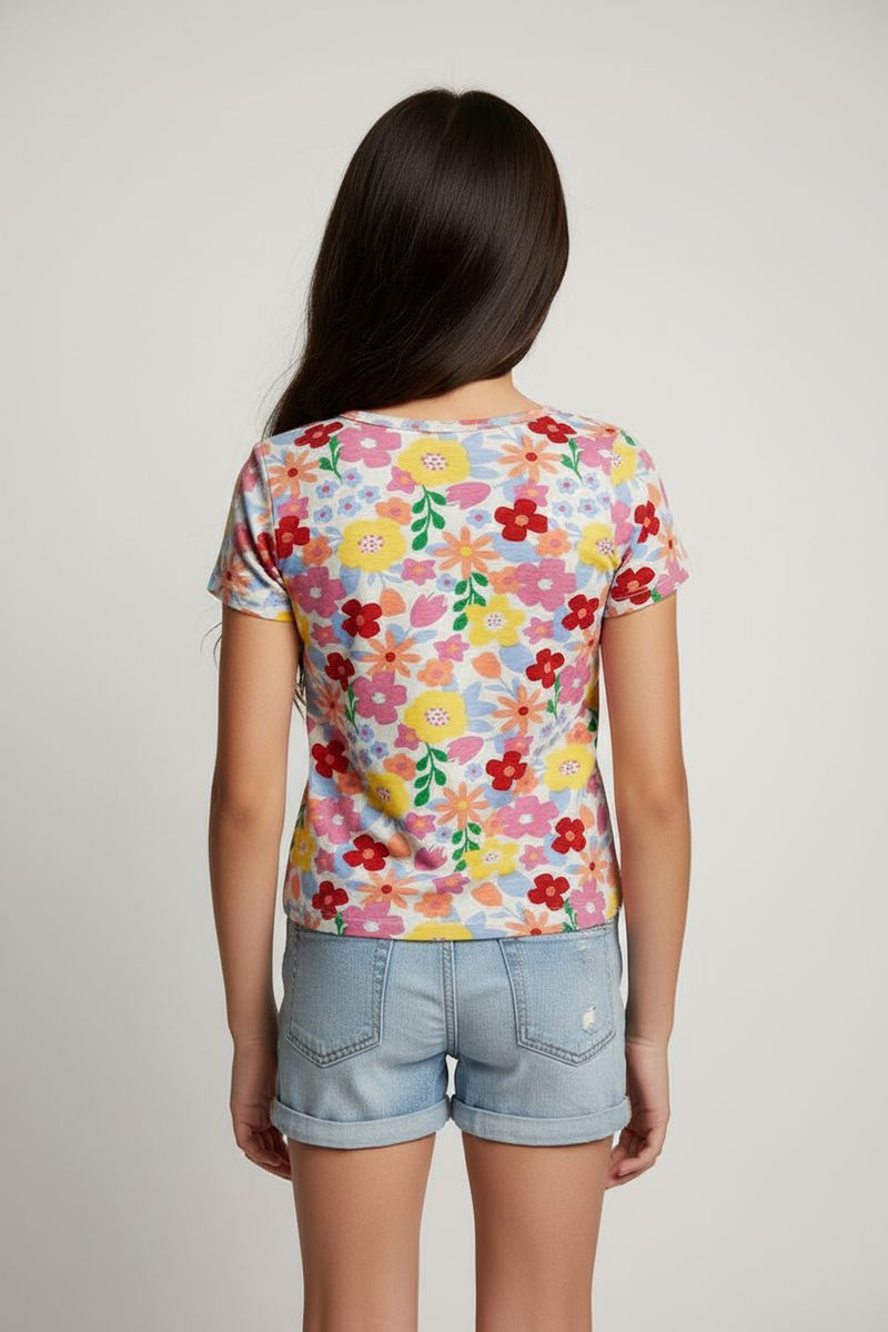 Blusa Infantil Caedu de Algodão Estampa Floral Vibrante