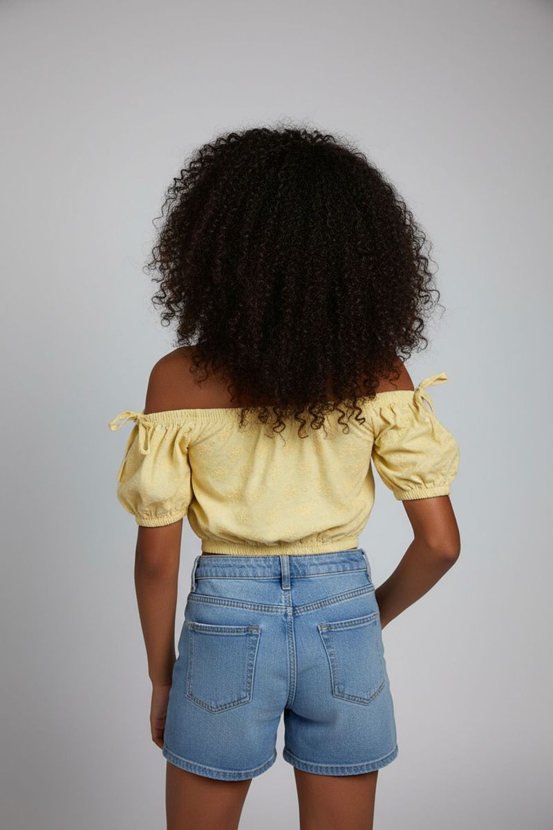 Blusa Ciganinha Cropped Infantil Menina Amarela Laise Caedu