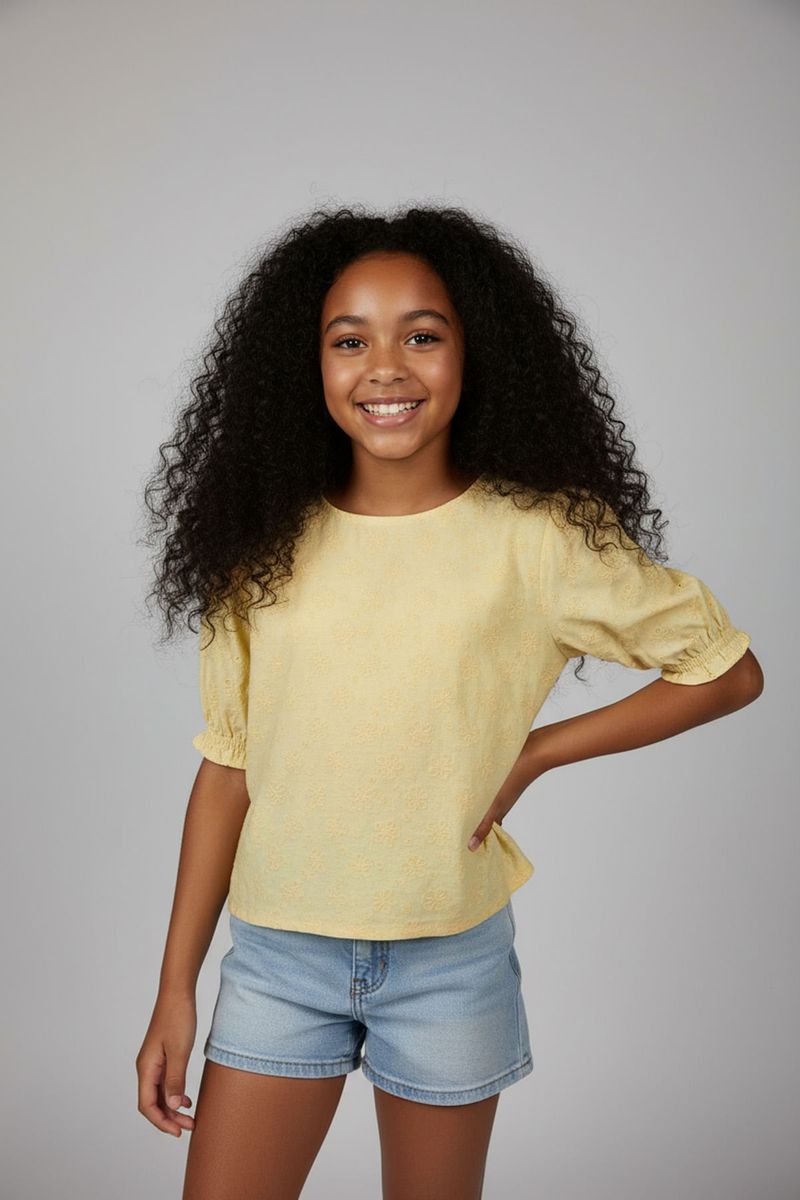 shorts jeans claro para um visual despojado. Para um toque arrumado, use com saia estampada e sandálias. Complete o look com acessórios como tiaras coloridas ou pulseiras, criando um estilo único e divertido. Encontre