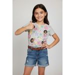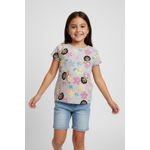 Combine a blusa com shorts jeans claros para um look despojado, ou com uma saia colorida para um visual mais divertido. Nos pés, tênis brancos ou sandálias confortáveis complementam o estilo. Adicione uma tiara ou presilhas de cabelo para um toque final encantador.
