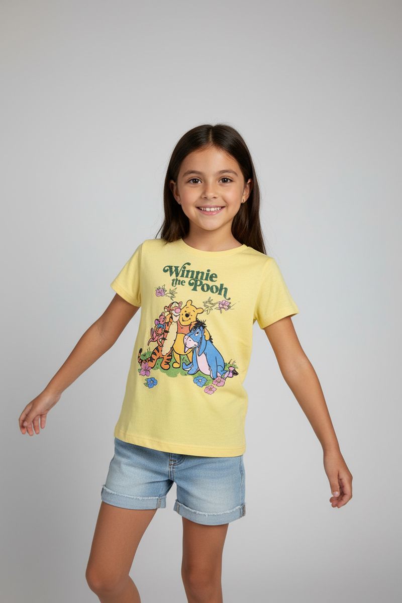 A blusa infantil Winnie the Pooh e Amigos Caedu: conforto e leveza em meia malha. Esta roupa infantil com estampa vibrante traz alegria e moda para sua pequena, com preço bom.