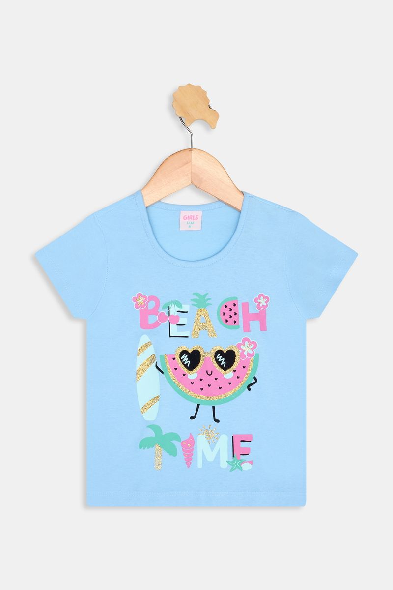 A Blusa Infantil Caedu em meia malha oferece conforto e estilo para as meninas. Com estampa vibrante de melancia e "BEACH TIME" em azul claro, é a roupa infantil perfeita para momentos de diversão. Uma peça Caedu que une moda menina e bem-estar.