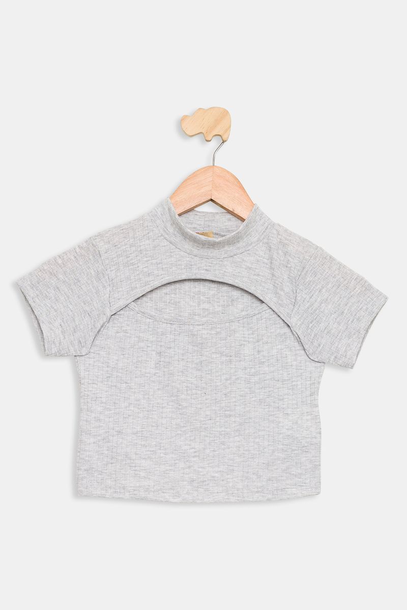 Detalhes: Recorte horizontal vazado, textura canelada, barra cropped