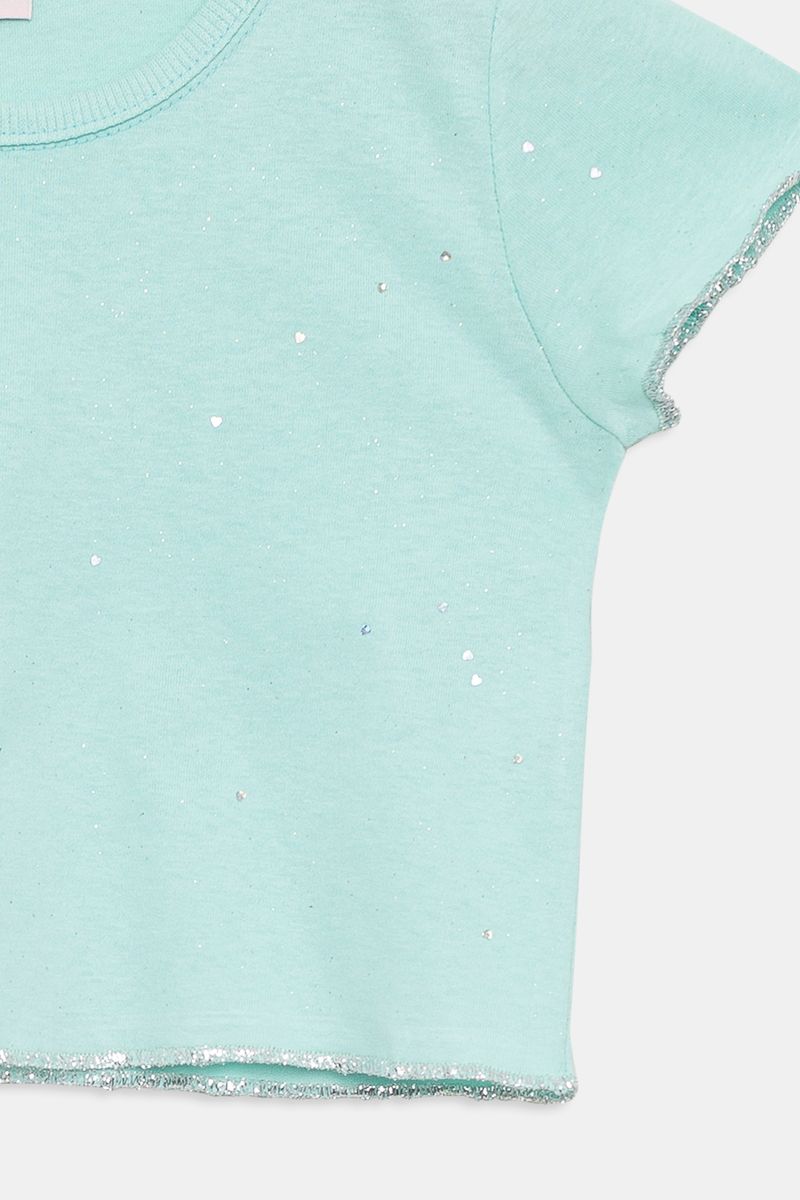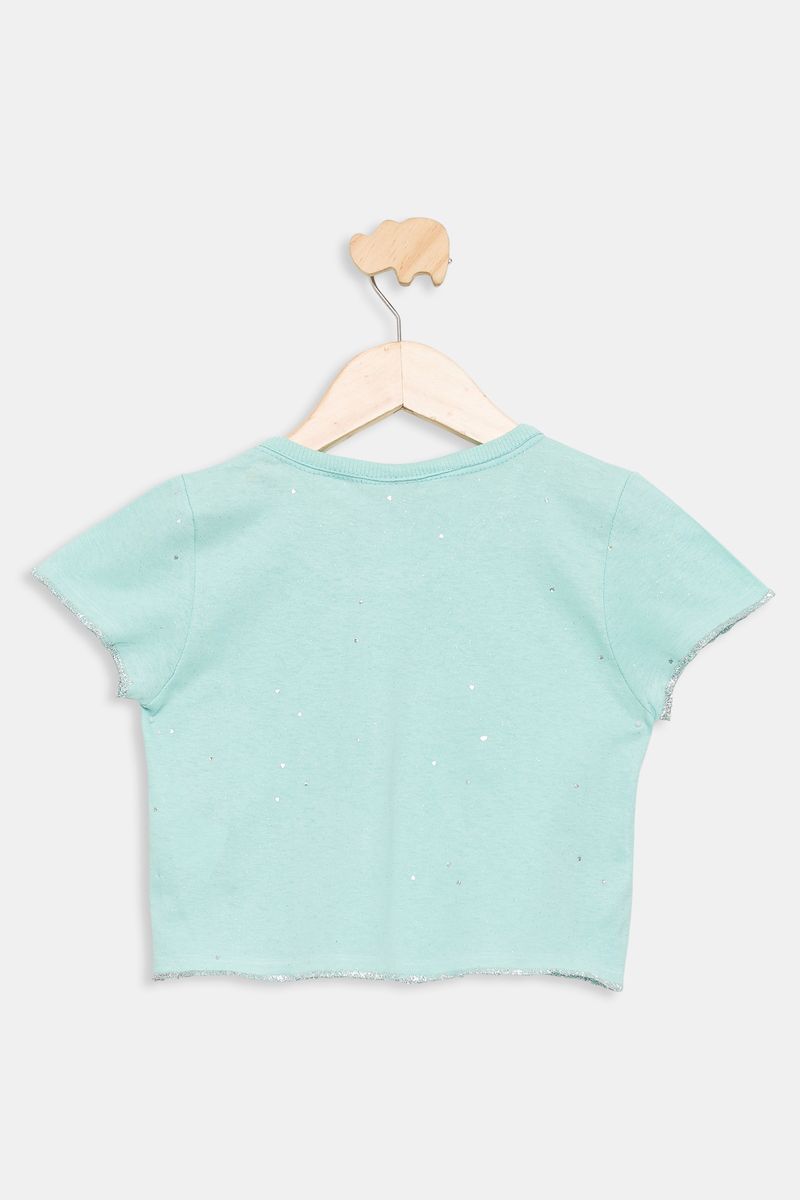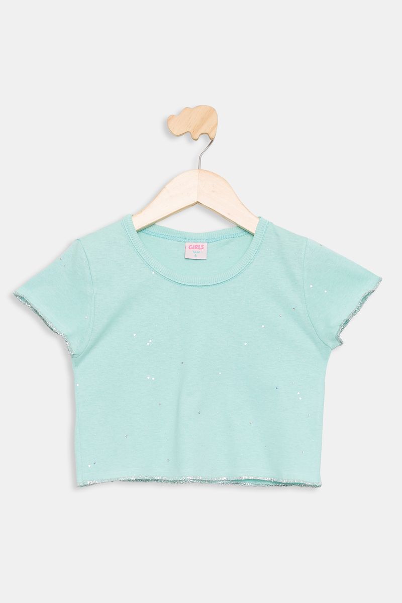 Blusa infantil verde claro com brilhos, cheia de energia e estilo para looks mais brilhantes e modernos.