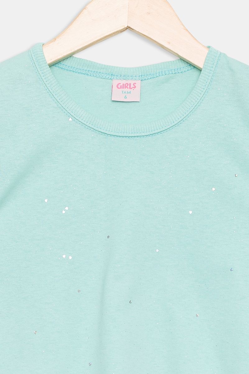 Blusa Infantil 4 a 8 Meninas Brilho Coração Verde Claro