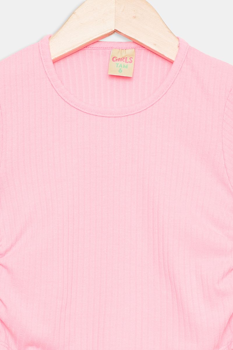 A Blusa Infantil 4 a 8 Rosa Neon Caedu é a escolha perfeita para looks cheios de energia e estilo. Com seu tom vibrante e design moderno em ribana, esta roupa oferece conforto e um toque ousado. Possui decote redondo e franzidos laterais ajustáveis, ideal para a moda infantil.