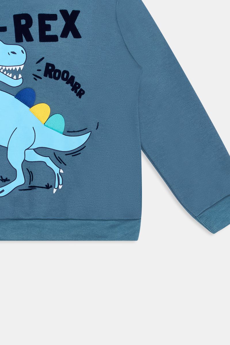 Prepare seu pequeno para a aventura com o Blusão Infantil Caedu T-Rex! Feito em 100% algodão e moletom sem felpa, oferece conforto e maciez. Com capuz e uma estampa vibrante de dinossauro, é a roupa infantil perfeita para o dia a dia, combinando estilo e diversão. Uma peça essencial da moda Caedu para os meninos!
