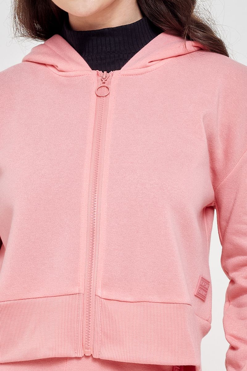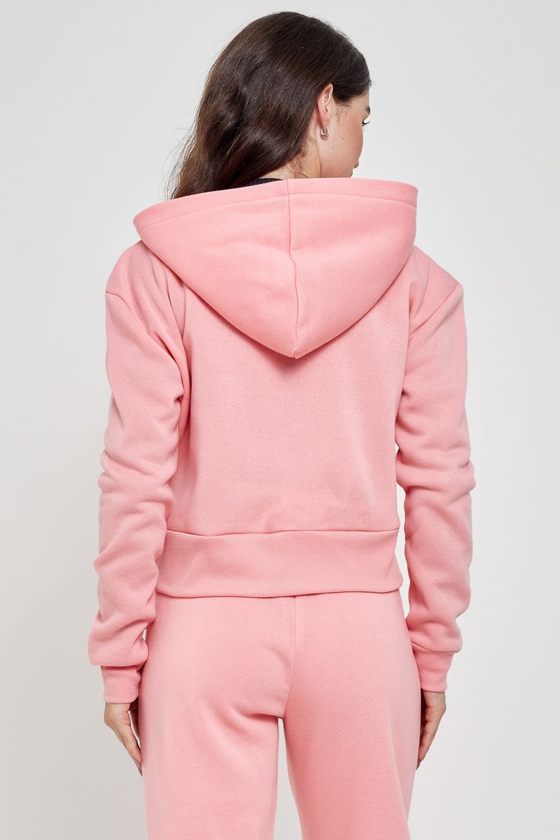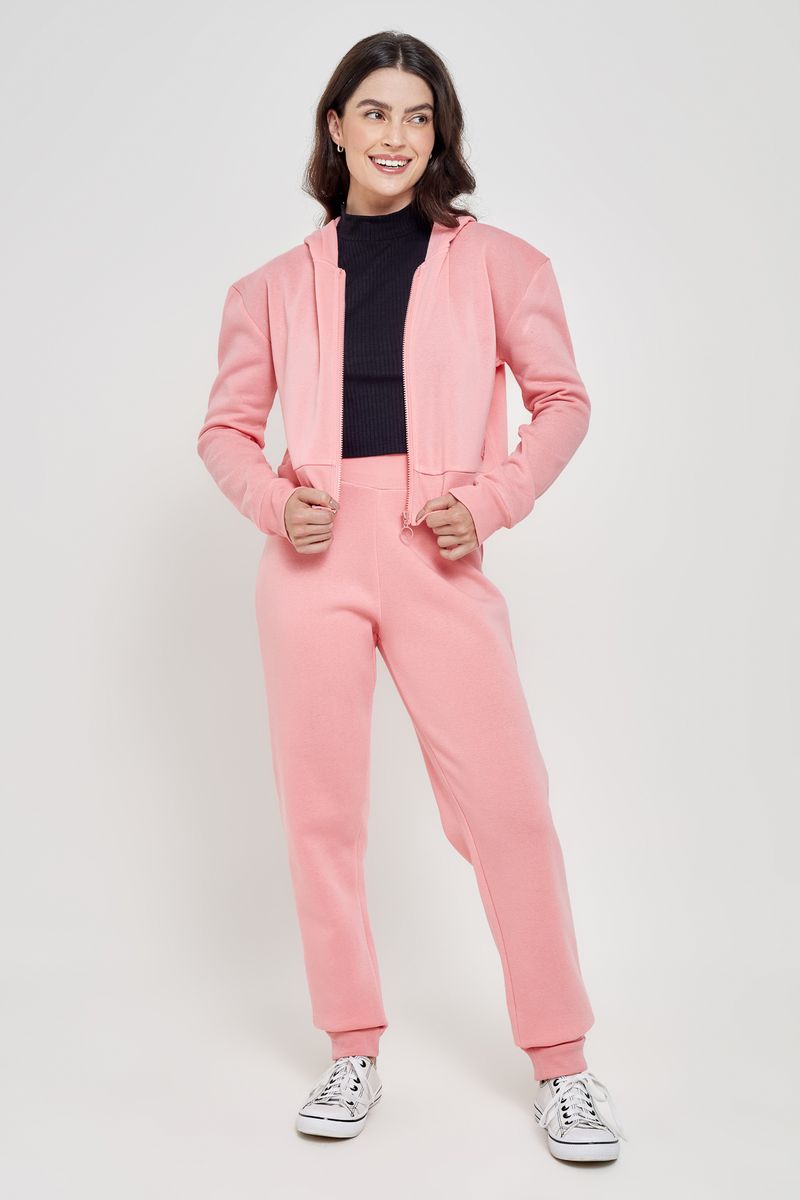 Blusão Moletom Feminino com Zíper e Capuz Rosa Claro Caedu