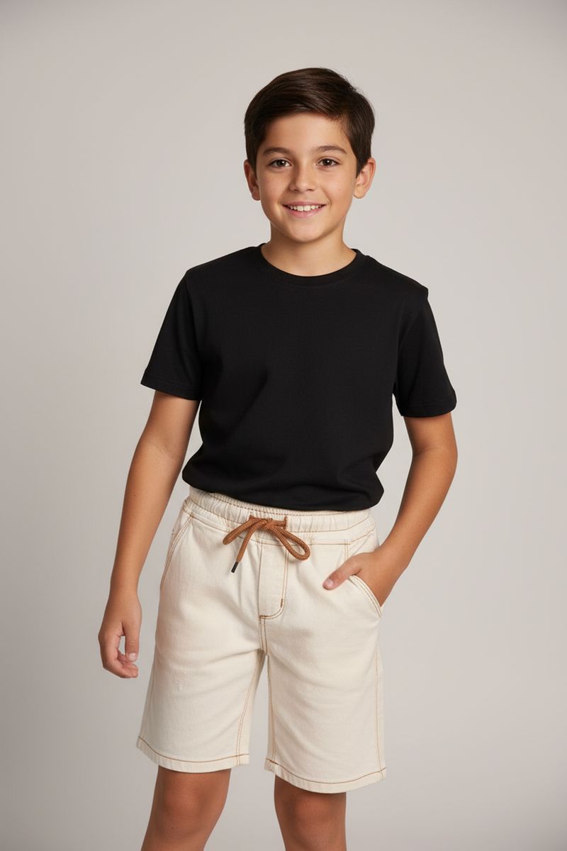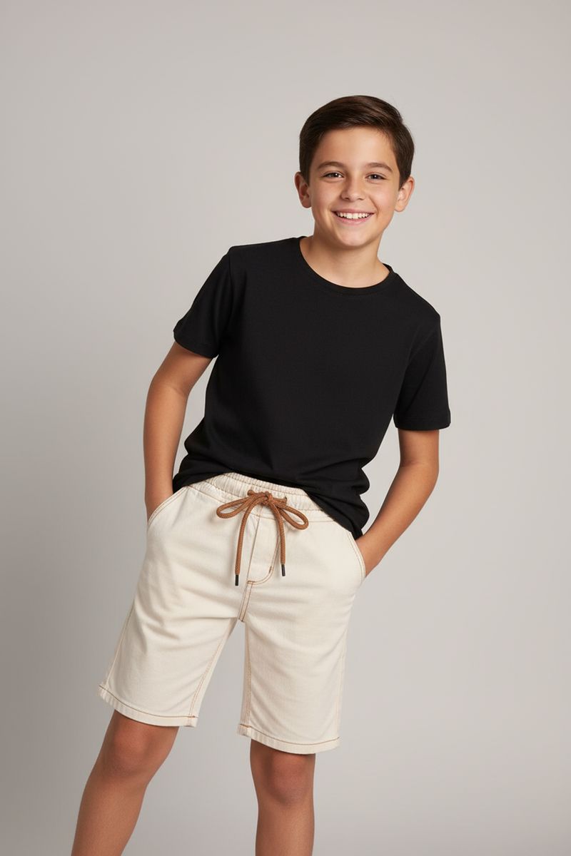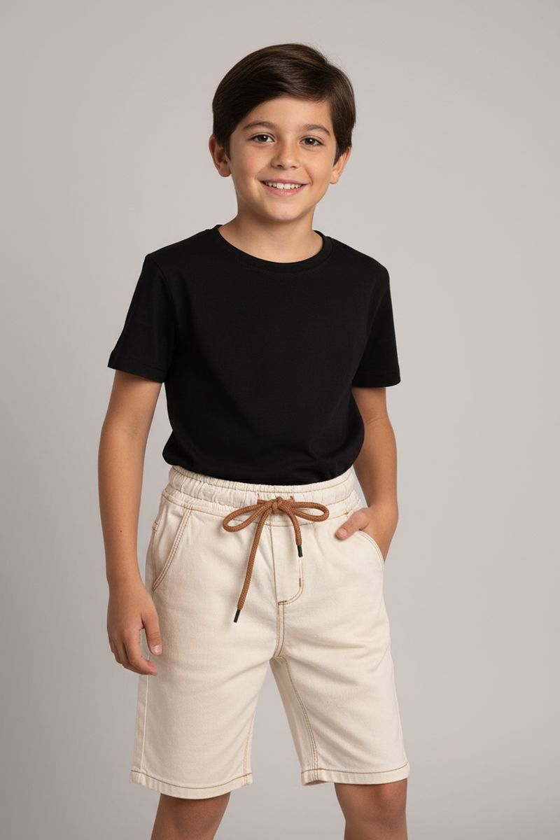 A Bermuda Jeans Juvenil Bege Caedu oferece o máximo de conforto e estilo para os jovens. Com cós elástico e cadarço ajustável, garante um caimento perfeito. Feita em 100% algodão, é ideal para o dia a dia com um toque moderno.