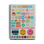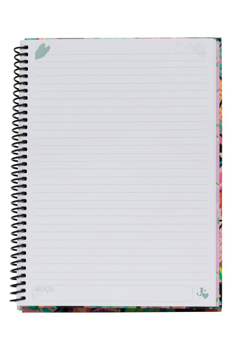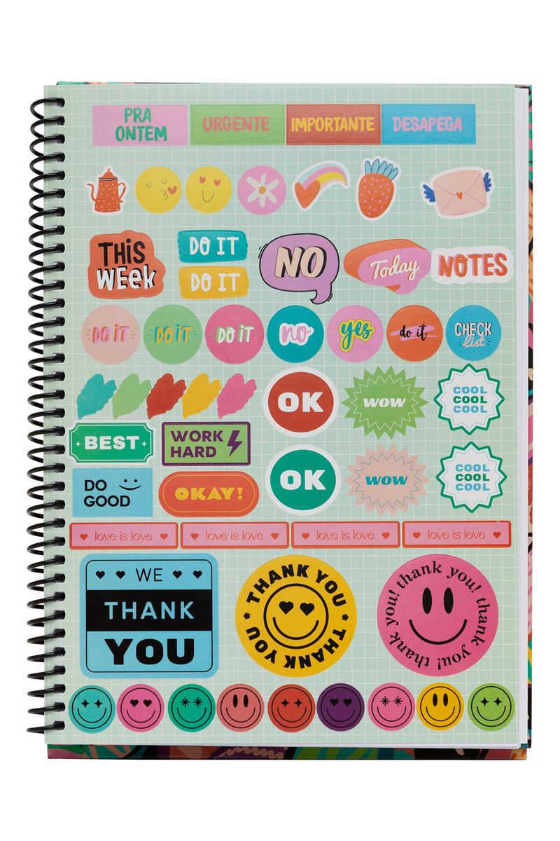 Caderno universitário capa dura, miolo pautado com 96 folhas em papel 80g, encadernação em wire-o. Acompanha folha de adesivos.