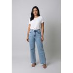 Calca fem aj fcaa195 jns wide brilho cl jeans azul claro