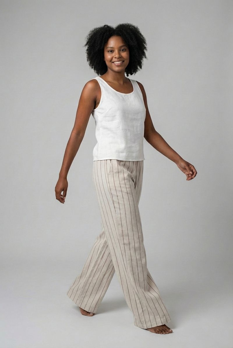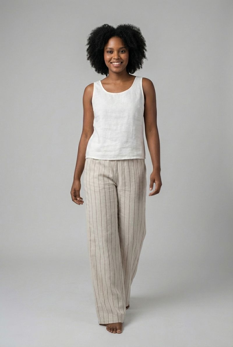 Combine sua calça pantalona risca de giz com regatas básicas ou blusas leves para um look casual chic. Para um toque mais despojado, aposte em um cropped e tênis. Complete o visual com sandálias de salto baixo ou rasteirinhas e uma jaqueta jeans para um estilo versátil e moderno em qualquer ocasião, realçando sua moda Caedu.