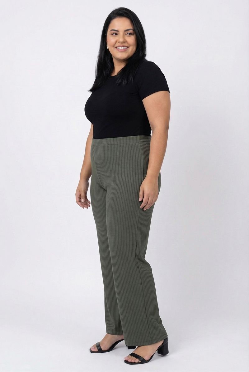A Calça Feminina Caedu Ribana Canelada Wide Leg Verde Oliva é a peça essencial para quem busca estilo e conforto. Com seu tecido ribana canelada e modelagem wide leg, oferece um caimento impecável e um toque moderno. Perfeita para elevar seus looks com elegância e praticidade.