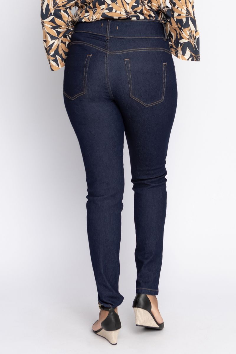 Realce sua silhueta com a Calça Feminina Skinny 2 Botões Jeans Escuro Caedu. Confeccionada em jeans, oferece conforto e estilo. Possui bolsos, cós com passantes e fechamento em zíper e botão duplo. Uma peça versátil e moderna para seu guarda-roupa, com preço bom.