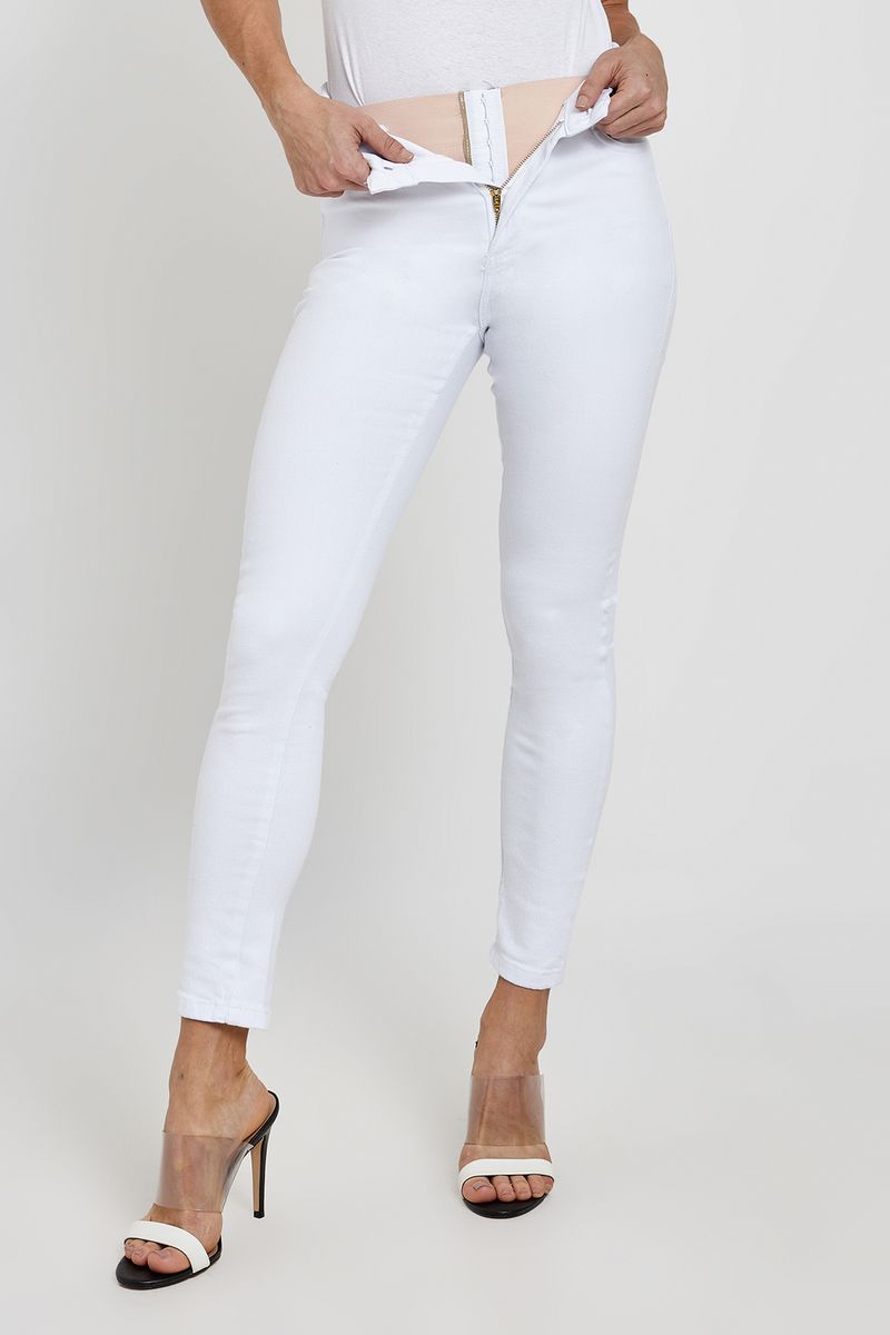Eleve seu estilo com a Calça Jeans Feminina Super Lipo Branca Caedu. Confeccionada em algodão e denim, oferece caimento perfeito e conforto. Ideal para quem busca moda e valoriza a silhueta, esta roupa é um item essencial no guarda-roupa.