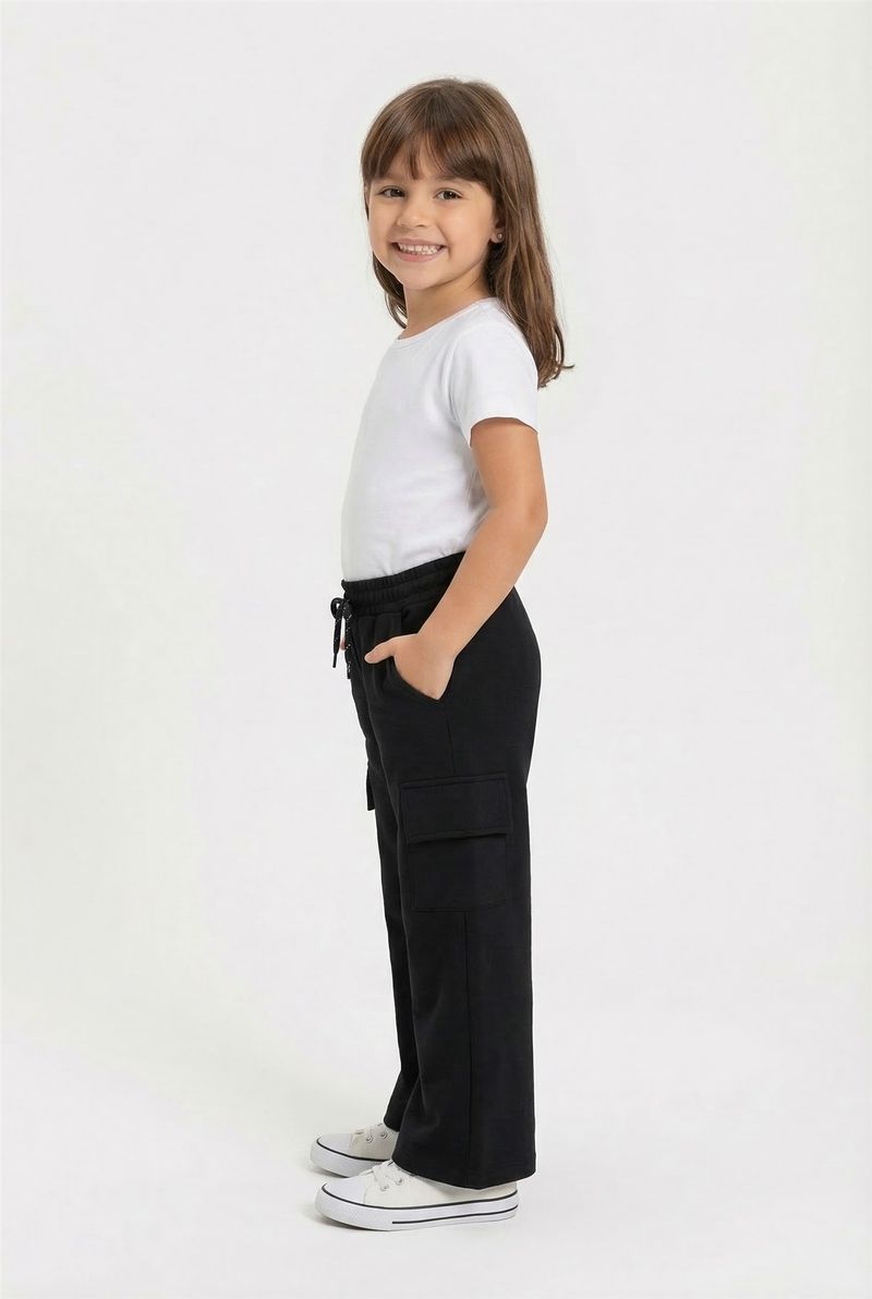 Descubra a Calça Cargo Wide Leg Infantil Preta Caedu, a escolha perfeita para um visual moderno e confortável. Com modelagem ampla e bolsos cargo práticos, esta peça em moletom com felpa oferece liberdade de movimento e um ajuste ideal graças ao cordão regulável. Ideal para o dia a dia com muito estilo.