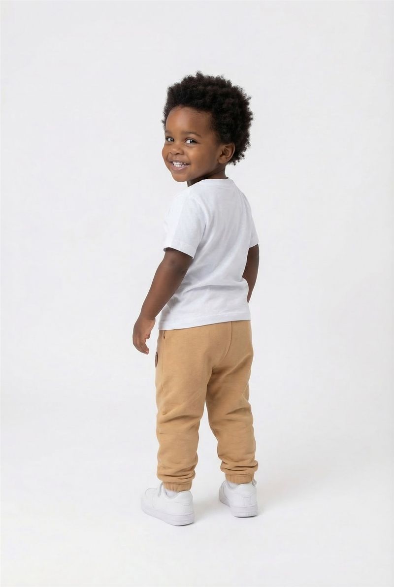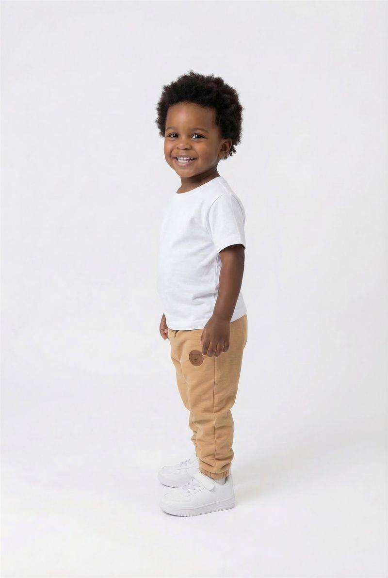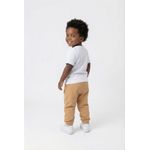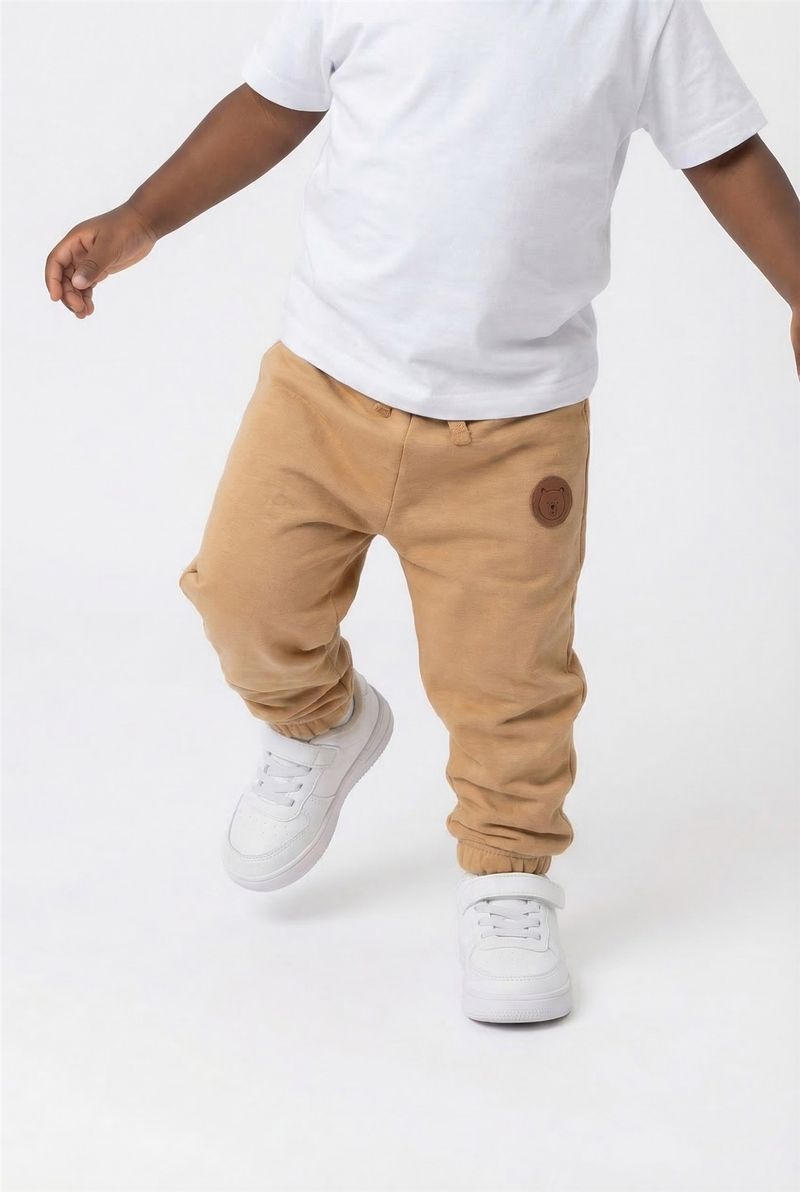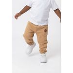 A Calça Moletom Infantil Bege Escuro Caedu, em moletom com felpa, oferece conforto. Seu tom terroso bege escuro garante um visual moderno. O aplique de urso na coxa adiciona um toque lúdico. Ideal para o dia a dia dos pequenos.