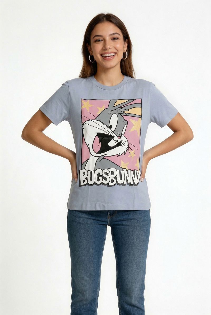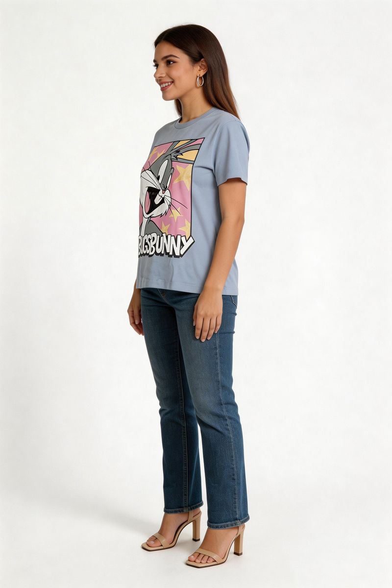 A Camiseta Feminina Pernalonga Looney Tunes Azul Claro Caedu é perfeita para um look divertido e confortável. Em 100% poliéster, oferece leveza. Com estampa vibrante do Pernalonga, manga curta e gola redonda, esta roupa feminina é puro estilo.