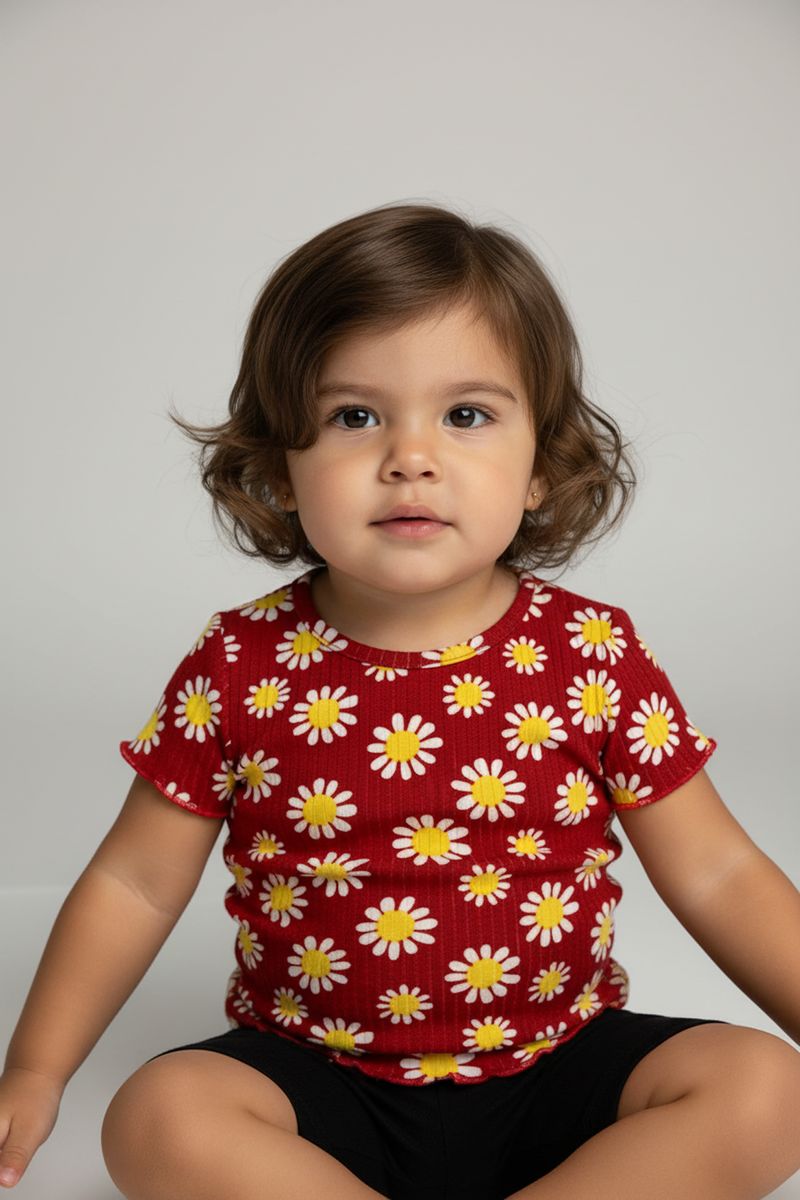 A Blusa Infantil Ribana Caedu, 100% algodão, oferece conforto e leveza para as pequenas. Com estampa de margaridas e cor vibrante, é perfeita para um look charmoso e divertido. Uma roupa essencial para o guarda-roupa infantil. Encontre na Caedu loja mais próxima ou na loja virtual.