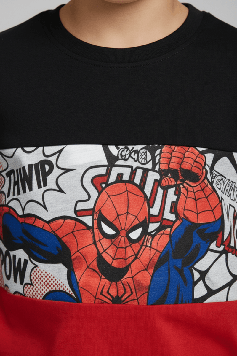 A Camiseta Infantil Homem-Aranha Caedu é a roupa infantil ideal! Conforto e durabilidade com 100% algodão e meia malha. Design preto e vermelho com estampa vibrante do Homem-Aranha, esta camiseta infantil da Caedu garante estilo e diversão.