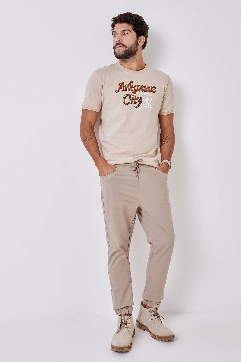Combine sua camiseta bege claro com jeans escuros para um visual clássico, ou com bermudas de sarja para um estilo mais descontraído. Adicione um tênis casual ou sapatênis para completar o look. Para um toque extra, use com uma jaqueta leve aberta em dias mais frescos, criando camadas modernas e cheias de personalidade.